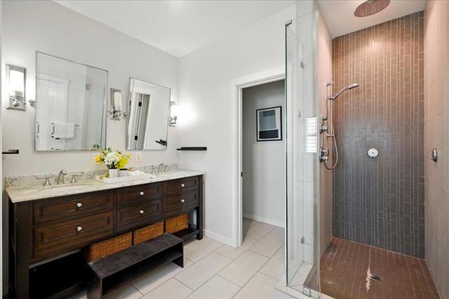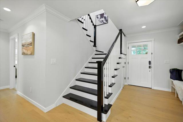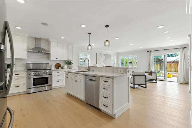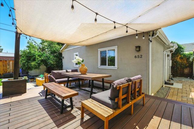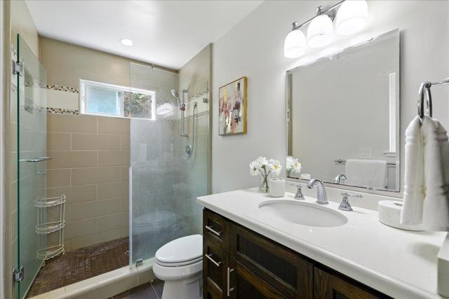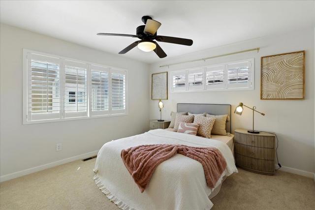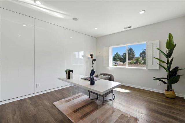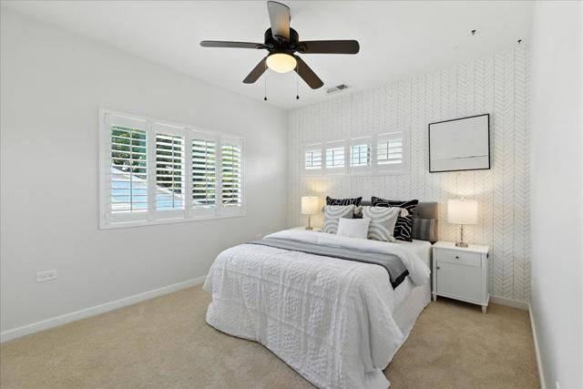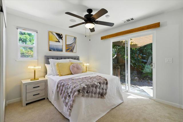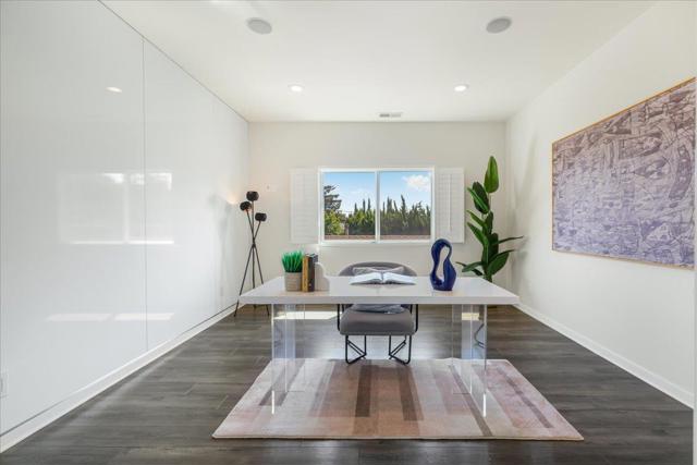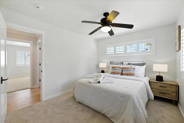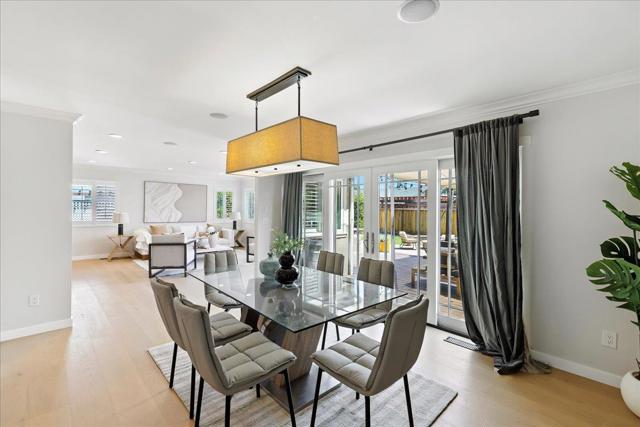 A 2-story home rebuilt in 2012, with a detached ADU is nestled in one of the most desirable neighborhoods. Located near Santana Row, Westfield Valley Fair, Mitsuwa Market, & Apple Park. Close to top rated private school: Harker. With easy access to Hwy 280, 880, & San Tomas Expressway, as well as premier shopping & dining. High ceiling, hardwood floors,& recessed lighting. The kitchen is equipped with stainless steel appliances, including a refrigerator, oven, microwave, range hood, dishwasher,& wine cooler, granite countertops, a two-tier kitchen island, white cabinetry, and a dry bar. Downstairs bedroom has ceiling fan, & a delightful carpeted playroom with a built-in rock wall, closet & mudroom bench. Upstairs, the primary suite has high vaulted ceilings, accent wall, chandelier, walk-in closet, & a luxurious bathroom with dual-sink vanity, marble countertop, frameless glass shower enclosure, jacuzzi tub, & water closet. Additional features include solar panels, a Tesla EV charger, dedicated laundry area, & a Swisstrax-finished 2-car garage with six large cabinets. The landscaped front yard features concrete brick pavers, while the backyard is designed with a raised deck, built-in gas BBQ, & firepit. This is ready to welcome you home.