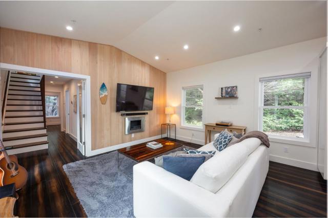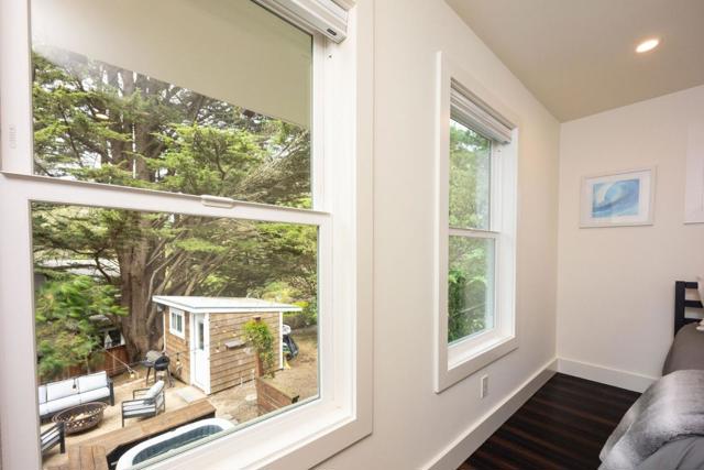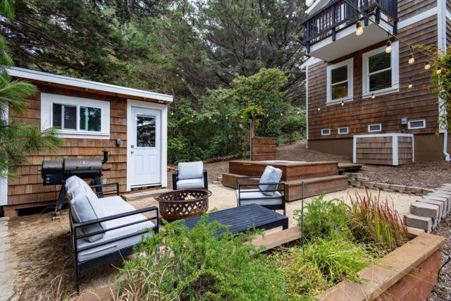 NEW PRICE! Just 5 years young, this Moss Beach retreat pairs modern ease with coastal calm. This quiet cul-de-sac borders 4,000 acres of protected national parkland and trails outside your door, so sunrise walks and golden-hour hikes are easily enjoyed. Inside, warm hardwood floors, a wood accent wall, and a biofuel fireplace set the tone for relaxed living. The open kitchen features stainless steel appliances, quartz counters, and a butcher-block island. Three bedrooms and two baths provide comfort and convenience. The entire upstairs is dedicated to the primary suite - a private retreat with a dedicated office, ocean peek, and balcony overlooking the backyard - complete with hot tub, fire pit, and space for movies under the stars. Storage sheds keep surfboards and bikes organized, and low-maintenance landscaping means more beach time. The garage functions as a home gym thanks to ample parking at the end of the street. Owned solar adds efficiency, and the location outside High Fire Hazard Zones offers peace of mind. Embrace the Moss Beach rhythm: seaside walks on Pillar Point Bluff, tide pools at Fitzgerald Marine Reserve, and the Enchanted Forest. Minutes to Half Moon Bay and within easy reach of San Francisco, its a peaceful, polished base for Coastside living.