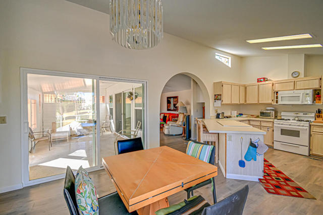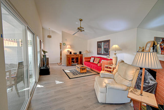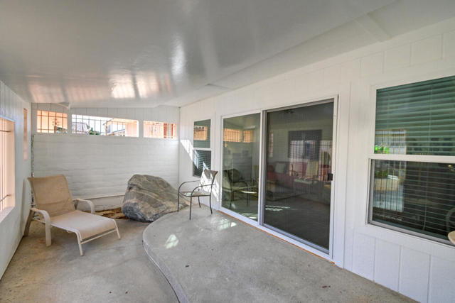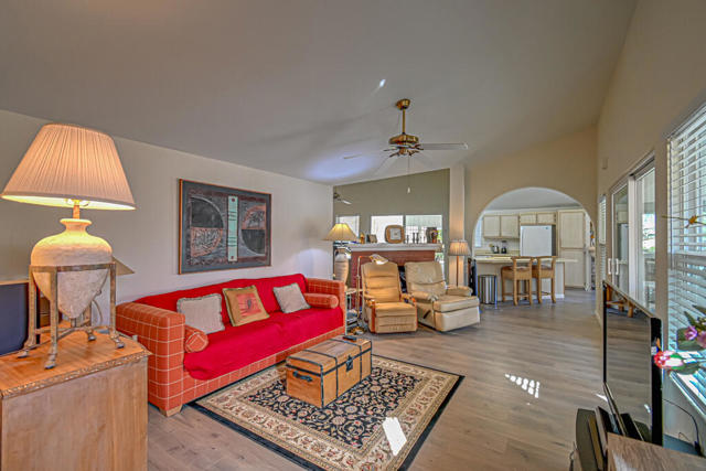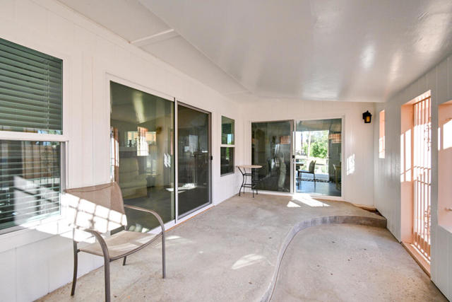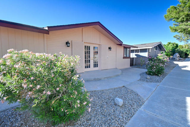 A surprisingly charming and well cared for second home for the seller for years. It has been gently used and many updates have been done. The home has a 433A Certification. Newer patio doors(3) and 4 new windows. Home has Desertscape for low maintenance Crawl space has custom covers. The home offers a split plan for privacy The location is spectacular as French Doors open up to a greenbelt near the tennis courts and the club house is a short walk and leave the car at home. There is a lot of light and is a joy to see. The patio is covered and enclosed for your security and enjoyment. This is really a treat to see!!