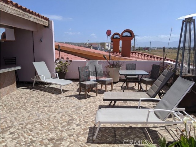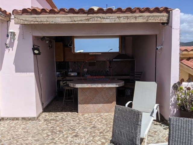 House for Lease or Sale in Loma Dorada, Las Brisas District, in one of Ensenada's best neighborhoods, located in a gated community with 24-hour security. It is built on 3 levels distributed as follows: The first level, street level, has an entrance hall, a guest half bathroom, a living room, a dining room, a full kitchen, and a TV area. A fully covered 2-car garage, a laundry room with access to the service hallway, and a backyard with a bar area, a bbq grill, and an outdoor TV. It also has a small garden with trees and plants. The second level has 3 bedrooms, an office/playroom (possibly a 4-bedroom), and 2 full bathrooms: The master bedroom with Ocean View from bedroom, has a walk-in closet and a full bathroom.The other 2 bedrooms and the office/playroom share a full bathroom. The third level features a suite with a living/dining room, a small kitchenette, and a fully equipped terrace with a bbq grill/ bar, overlooking the ocean. The full bathroom on this level serves the suite and terrace. Located one block from Ensenada's best sandy beach (ideal for walking or exercising), two blocks from Macroplaza del Mar, and less than two minutes from stores like Home Depot, Walmart, Cinepolis, Costco, and others. It features 16 panel solar system, entire house water filtration system with power pump, and softener system supplying drinking water in the kitchen.