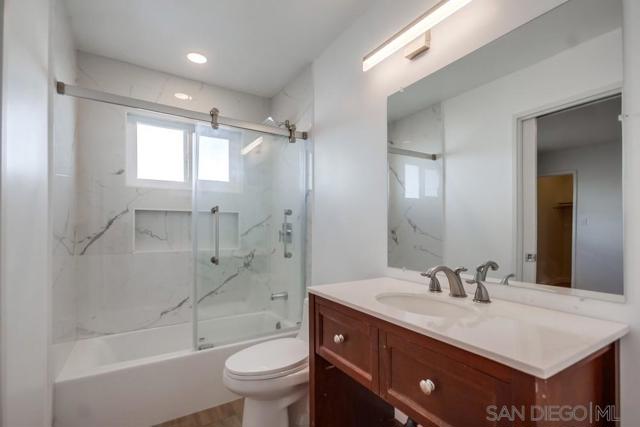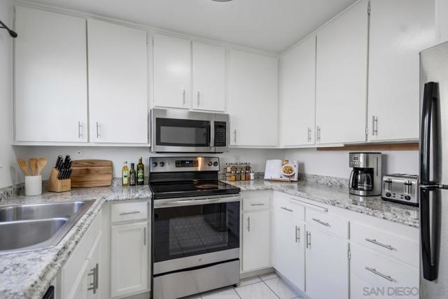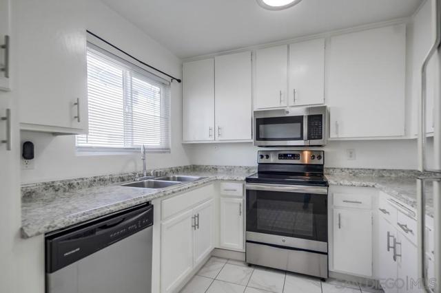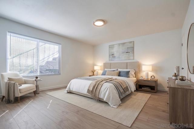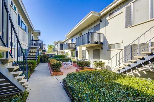 MUST SEE in person-Beautiful Bright and light-2 bed / 2 bath (lives like dual masters), 1,000+ sq ft. Remodeled baths, new windows, LVP flooring, baseboards, stainless steel appliances, and new furnace/AC. Ground floor with private patio. Small secure community with pool, new roof (2024), 1 assigned parking. Prime location—minutes to SDSU, freeways, shops & entertainment. Motivated Seller. Investors the Average rents $2500 per month. "Some photos have been virtually staged to help buyers visualize the property potential"