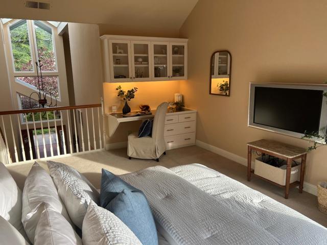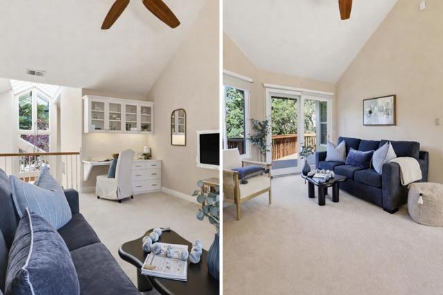 Open loft currently staged as a 4th bedroom. Versatile floor plan offers flexible options to suit your needs. Ideal as home office, guest room, or 4th bedroom. A peaceful retreat on a quiet street just minutes from downtown Los Gatos. Beautifully designed and meticulously maintained, exceptionally bright home offers vaulted ceilings, multiple outdoor living areas and serene mountain views. Look up! The dramatic two story entry features a stunning ceiling of skylights and an artesian chandelier! Elegant living room with a marble fireplace. An updated kitchen is perfect for entertaining and features granite counters, a large center island with breakfast bar, GE Monogram built-in SS refrigerator/freezer, Thermador gas range, Bosch dishwasher, 2 sinks,& abundant custom cabinetry. Primary suite offers a private sitting area, vaulted ceilings, an enormous bath with dual vanities, Jacuzzi tub, skylights, and walk in closet complete with beautiful closet organizers. Yes! There's an attached 2 car garage; this home has it all! Outdoor living includes wraparound redwood decking, a private slate patio with fire pit, and beautifully landscaped grounds with mature oak trees. Additional features include central heat and A/C, dual pane windows, don't miss the walk-in attic off primary bath.