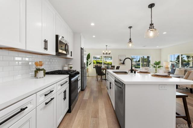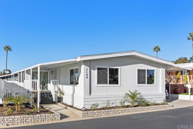 $26K PRICE REDUCTION! NO Property Taxes! Best value in the 55+ gated community of Lakeshore Gardens with resort-style amenities and active coastal lifestyle just steps to the beach! Perfect location with no home directly in front, this beautifully remodeled home offers peaceful fountain views and is just a short walk to the clubhouse and amenities. This home is designed with the perfect blend of luxury, comfort, and coastal charm. Inside, the home has been reimagined with an open layout, natural light, and high-end finishes throughout. The all-new kitchen features stainless steel appliances, quartz countertops, a 7-foot center island for meal prep and casual dining. Plus an amazing walk-in working pantry and laundry center featuring built-in cabinets, butcher block counters and shelves. The living and dining areas flow seamlessly with the kitchen! There is also a cozy TV room and a sunroom—ideal for an office or den. The primary suite includes a spacious bedroom, a dreamy walk-in closet with a spinning shoe rack, a dual-sink vanity, and a large tiled walk-in shower. Upgrades include new roof, skylight, furnace, A/C, fixtures, lighting, vinyl flooring, interior and exterior paint, and vinyl fencing. Enjoy the private back patio with low-maintenance turf or relax on the front deck with its tropical landscaping and peaceful view. Lakeshore Gardens residents enjoy a clubhouse, pool, spa, sauna, fitness center, library, classes, and activities. Conveniently located near shopping, dining, entertainment, and the beach. With its location and quality renovation, this is one of the best opportunities in the community!