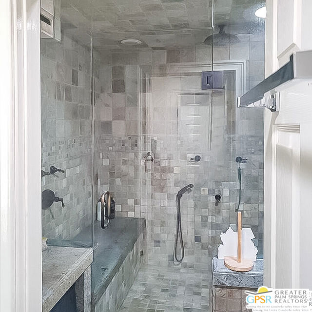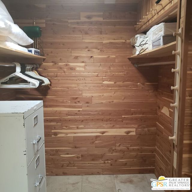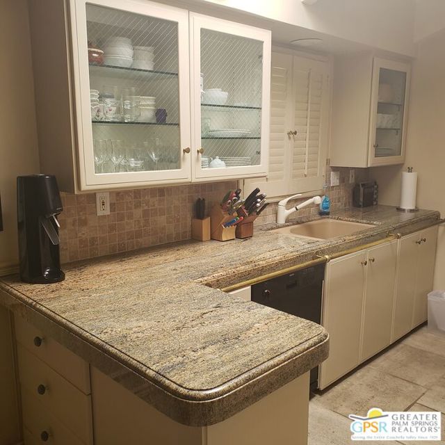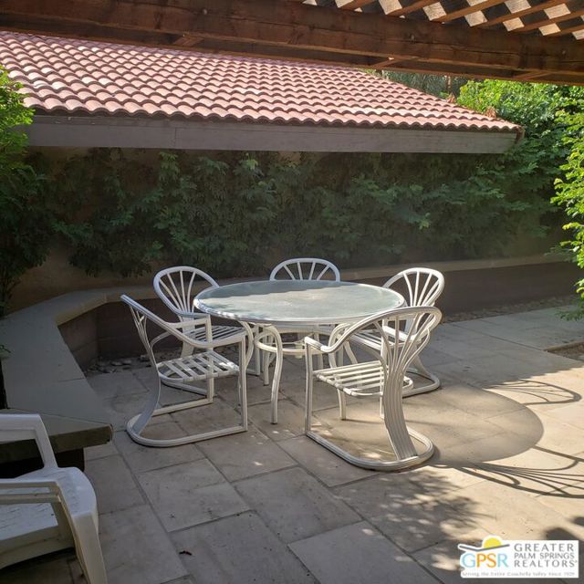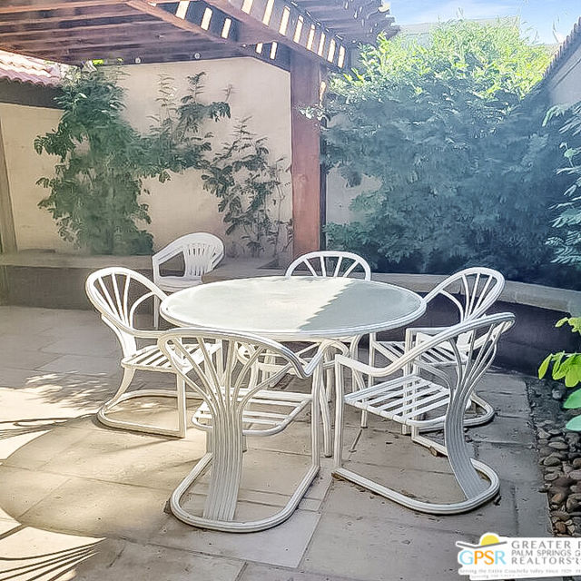 Great Location subdivision off Hwy 74 near El Paso shopping. 2bed,2.5bath 1300+ sq ft condo, private patio off LR/DR area plus off Master Suite. The only condo in Kings Point that has the half bath. designed by renowned modernist architect Hugh Kaptur. This condo features a large living room with tiled fireplace, soaring ceilings and clerestory windows. Flooring is all stone tiled.The spacious primary suite features a large double shower as well as a large cedar lined walk-in closet. Plus a sitting area that leads out to patio (the living room also allows access. Guest bedroom is en-suite with double vanity sink, shower over tub feature. Condo comes with 2 car garage with inside access to condo. In garage is newer washer/dryer units plus extra refrigerator. Kitchen includes smaller built in fridge, gas cooktop, electric oven. Condo is being offered turnkey furnished. The community features a sparkling pool at the end of each cul-de-sac as well as tennis courts. Located just minutes away from El Paseo, shopping, dining and hiking trails. Welcome home to your new historically designated condo.