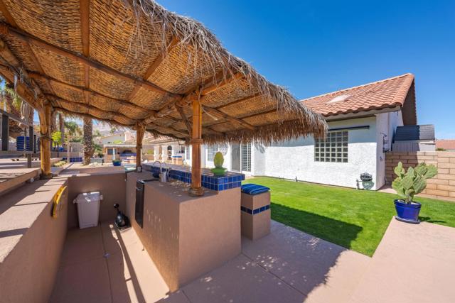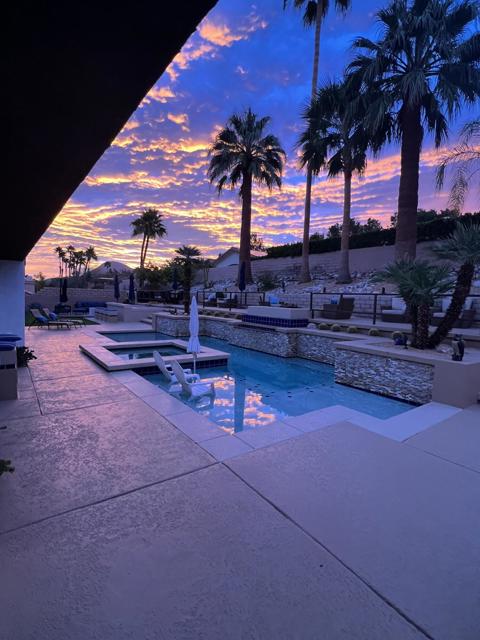 Available for the 2026-2027 season! Need a vacation! Beautiful Executive Custom Home totally remodeled inside and outside. A true resort atmosphere. Pebble Tec salt pool with waterfall, suntanning area, sitting areas, and raised fire pit. Built-in bar-be-cue and an entertainers dream with all the built-in seating and bars. Superb Contractor Amenities & Upgrades! Volume Ceilings Bring Splashes of light thru out this very open floor plan! The kitchen opens to the family room with an entertainer's wet bar & all overlooks the very private back yard! Lots of areas for intimate seating arrangements. A Don't Miss! Make sure to see this home at night the lighting is spectacular... This home is located In The Prime Canyon Cove Area of South Palm Desert And Is Just Minutes To El Paseo Shopping & Dining Venues! and it is within walking distance to the Living Desert! Truly A Remarkable home.Subject property is owned by a California licensed Broker