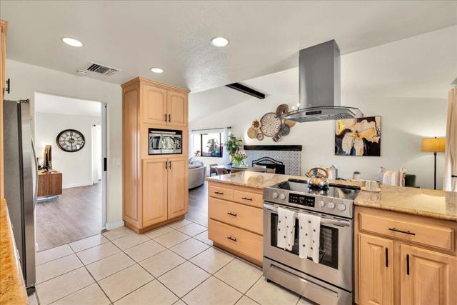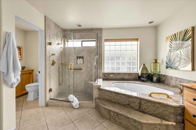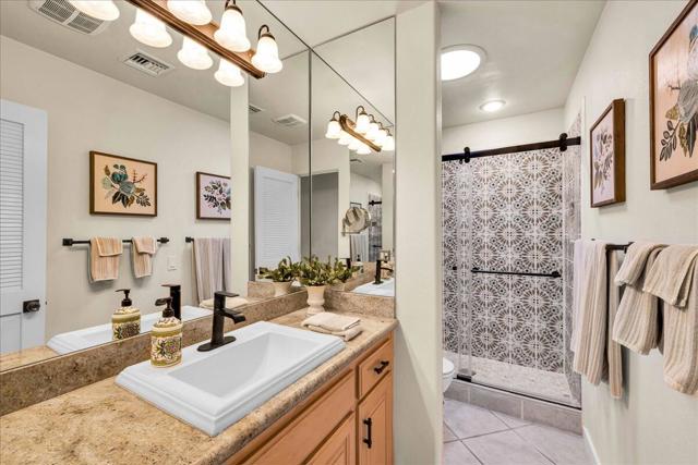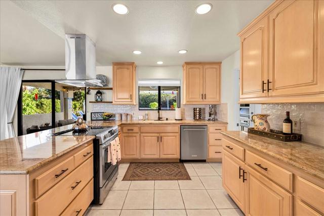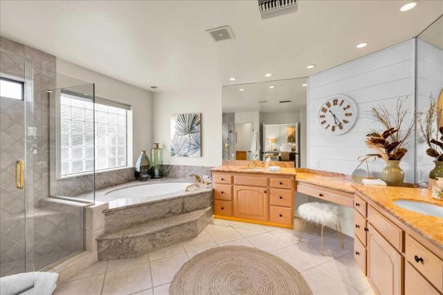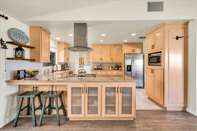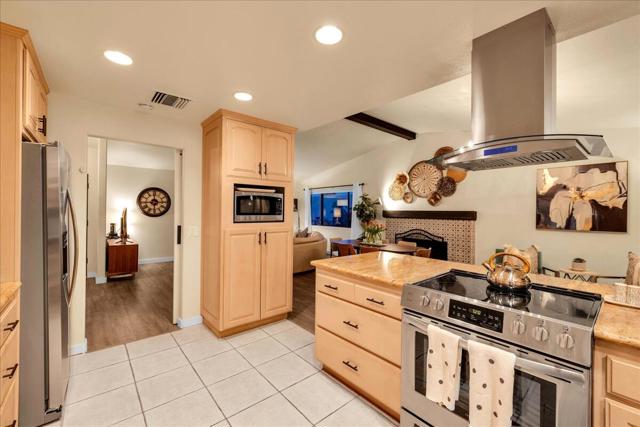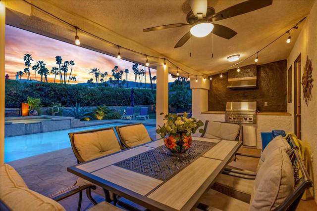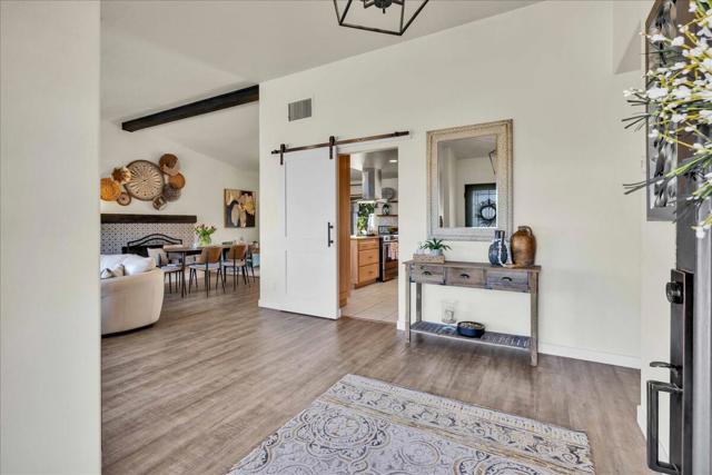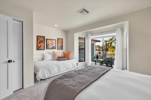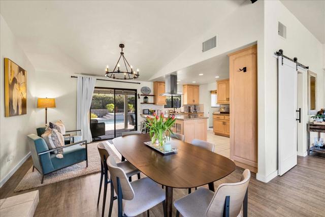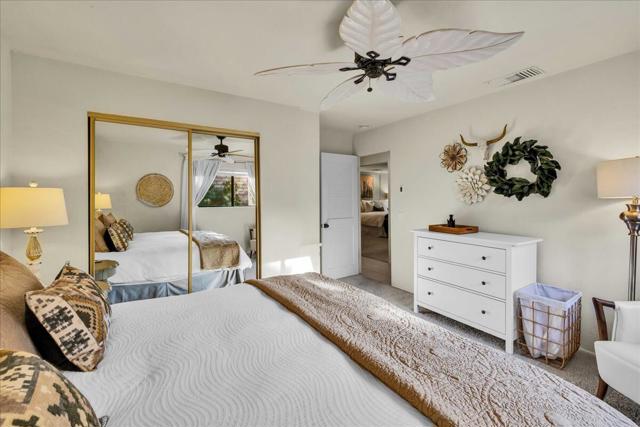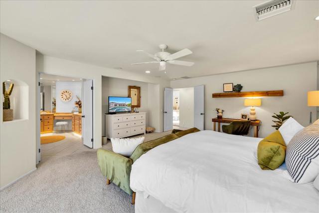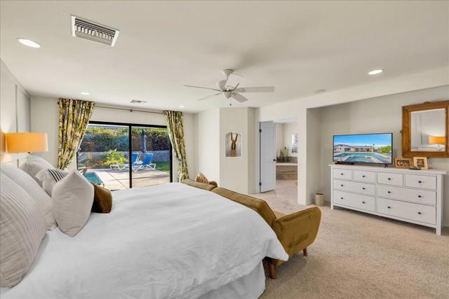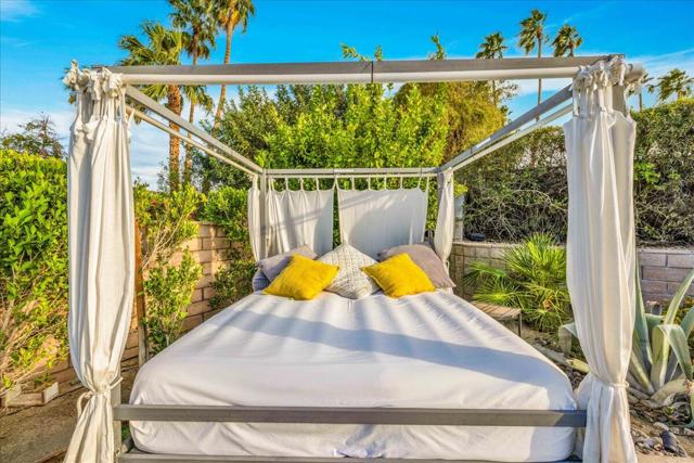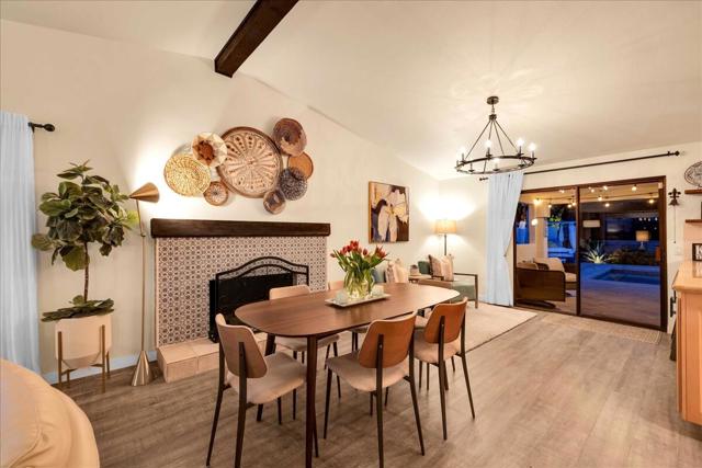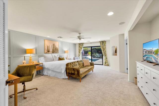 Discover Silver Spur Ranch--an enclave of unique homes nestled in South Palm Desert. THIS designer-furnished, exquisitely updated home is on an upper lot with unobstructed Southern Mountain views. Property combines vintage class with modern comforts. Sweeping circular drive sets the stage. Tiled courtyard entry. Double art glass doors open to reveal a showplace. Soaring vaulted ceiling with wood beam accent. Spacious open floor plan. Updated features throughout. Exceptional attention to detail modernizing entire property with great care, while showing respect towards its original Spanish revival core elements. Gourmet kitchen with new appliances, including floating hood vent over range, tons of countertop & cabinetry space, new backsplash. Barn door into kitchen. New fireplace tile, mantel, gas logs, rock & screen. Luxury vinyl floors in all main areas, carpeted bedrooms. Fresh interior paint. New fixtures, finishes, handles & pulls. Well-spaced bedrooms for privacy. Expansive Primary suite with spa-like bath--soaking tub, dual vanities, separate shower, oversized sized walk-in closet spaces! Sliders glide open to resort-like backyard. Sparkling pool with waterfall spa. Extended covered patio with built-in BBQ. Glorious, draped daybed to relax and enjoy desert vistas from. Hardscape enhanced by faux turf. Raised planters with mature landscape--even citrus trees! All new irrigation system, lighting and accent plants. Updated alarm system. Newly installed high-efficiency solar system. 2-Car attached garage + additional side drive for added parking. Enjoy the gorgeous interior, lounge poolside, entertain, stargaze--this is the IDEAL renovated property to call HOME! Centrally located, mere minutes from El Paseo shopping & dining, neighborhood hiking trails, The Living Desert, tennis clubs and multiple golf courses to choose from all minutes away! Furnished per inventory. Update/renovation list available upon request. Stop searching & START living!