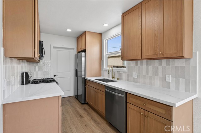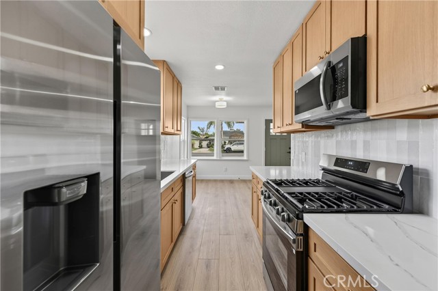 Nicely renovated, new kitchen, new kitchen appliances, new flooring, new bathrooms, new interior and exterior paint, new windows.