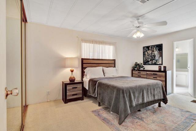 Discover exceptional value and comfort in this beautifully maintained 2-bedroom, 2-bath manufactured home in the highly desirable Portola Country Club, a gated 55+ golf community in the heart of Palm Desert -- where you own the land (no space rent!).Bright and inviting, the home offers open-concept living with newer dual-pane vinyl windows showcasing stunning mountain views, a newer water heater, a new ceiling and vinyl plank flooring in the air conditioned bonus room. Thoughtfully designed with two primary suites, each featuring its own ensuite bath, the layout provides both privacy and flexibility--ideal for hosting guests. In addition to central air and heating, an evaporative cooler enhances energy efficiency and year-round comfort.The bright and spacious kitchen includes a gas cooktop, stainless steel double oven, double stainless sink, and a built-in breakfast bar--perfect for your morning coffee or casual meals. The comfortable family room flows through French doors into a versatile bonus area, leading to a spacious hobby or craft room--tailored to your lifestyle.The home opens onto a large backyard with stunning mountain views, easily accessed from the rebuilt carport. This private outdoor space offers abundant room for a spa, barbecue, or garden, along with space for your four-legged companion and endless possibilities for relaxing or entertaining. The home is on a permanent foundation with recorded 433A for easy financing and peace of mind.Residents of Portola Country Club enjoy unlimited golf on the private 18-hole, par-3 course, included in the low HOA fee, which also covers trash, cable, and internet. The community features three pools, pickleball and bocce courts, a NEWLY REMODELED clubhouse and fitness center, pub, dog park, and a full calendar of social activities.Located close to El Paseo's premier shopping and dining, the McCallum Theatre, and Civic Center Park, this home offers the perfect combination of comfort, community, and resort-style living in a friendly and active environment.