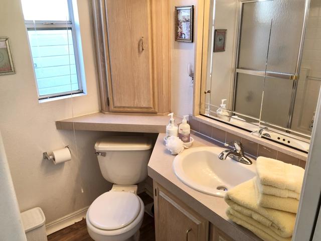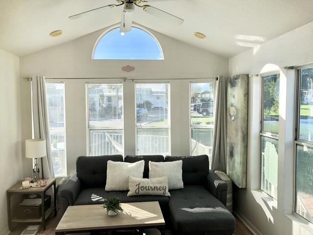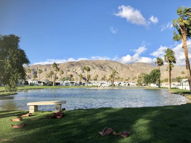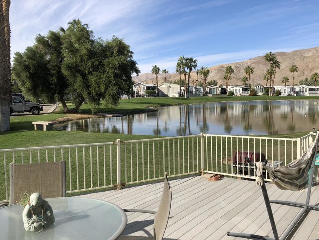 WATER VIEW! Lovely deck surrounds this charming furnished, turn key, park model in ALL AGED, gated community of Sky Valley Resort. 13 sparkling hot spring mineral pools, pickleball courts, tennis, walking trails, cafe, library, fitness center with community events, daily activities and exercise classes.Call for a showing! 760-218-9974