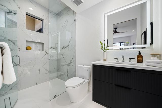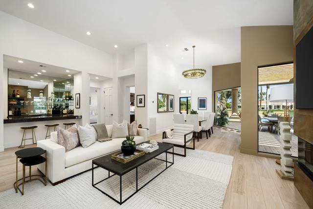 PRICE IMPROVED- NOW THE LOWEST PRICED RENOVATED SINGLE FAMILY HOME IN DESERT HORIZONS COUNTRY CLUB! This is your chance to own a stunning property. PRICE REDUCED $100,000, now offered at $1,799,000 for a fully renovated pool home with spectacular golf course views. Step into a stunning blend of modern design and desert luxury. A private gated courtyard sets the tone, leading to a dramatic glass pivot front door and an unforgettable first impression. Inside, soaring ceilings, sleek contemporary finishes, and expansive walls of glass fill the home with natural light while framing breathtaking mountain vistas and views of the 13th fairway at Desert Horizons Golf Course. Every space is thoughtfully designed to showcase both elegance and comfort.The open-concept great room is a true centerpiece--featuring a striking porcelain fireplace, designer lighting, and a sophisticated wet bar--perfect for entertaining or relaxing in style. Sliding doors open to a covered patio with a built-in BBQ, creating seamless indoor-outdoor living under the desert sky. The chef's kitchen is equally impressive, equipped with top-of-the-line appliances, a dramatic quartz waterfall island, and breakfast bar seating, all flowing effortlessly into the main living areas--ideal for both everyday living and upscale gatherings. Step outside to your private resort-style oasis: a sparkling pool and spa overlooking the fairway, offering the perfect setting for sunset entertaining, peaceful mornings, and unforgettable evenings. This 3-bedroom, 3.5-bath residence is designed for privacy and comfort. Each bedroom features its own beautifully appointed en-suite bath, while the primary suite delivers a true spa experience with a freestanding soaking tub, oversized shower, custom porcelain finishes, and a spacious walk-in closet.Additional highlights include a full laundry room, a 2-car garage, and a dedicated golf cart garage--perfect for embracing the Desert Horizons lifestyle.Residents enjoy access to the newly reimagined Desert Horizons Country Club, featuring a state-of-the-art fitness center, courts pavilion, championship golf, and a vibrant social scene.Crafted by Desert Home Investors, this exceptional property is a rare opportunity to own a modern desert retreat that lives like a private resort.