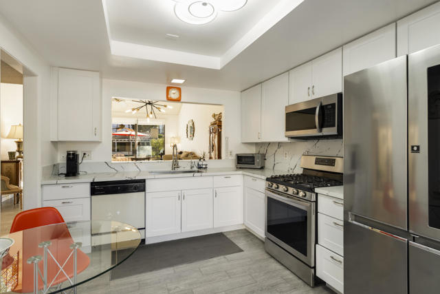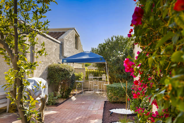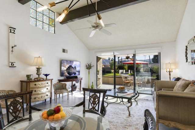 Welcome to 7581 Paseo Azulejo. South Palm Springs perfection with a view.This beautifully remodeled 2 bedroom, 2 bath residence spans 1,452 sq ft and delivers that effortless Palm Springs lifestyle buyers crave done right, and done stylishly.Designed with dual primary suites, this home offers flexibility, privacy, and comfort whether you're hosting guests, working from home, or simply enjoying your own desert sanctuary. At the heart of the home is an open floor plan with soaring cathedral ceilings that invite in natural light and create a relaxed, airy vibe. The charming garden atrium adds a delightful pop of indoor/outdoor charm because Palm Springs living should always include a little sunshine where you least expect it.Outdoor living? Oh yes. A huge front patio ideal for morning coffee or evening cocktails. A private side patio for quiet moments and the showstopper: a rear patio with sweeping golf course and water views the kind that make you pause and say, 'Yep... this is why I live here.'Set within the sought after Westgate community of Cathedral Canyon Country Club, residents enjoy beautifully maintained grounds, multiple pools and spas, and a true resort style atmosphere. Golf, walking paths, and mountain backdrops come standard stress does not.Perfectly positioned in South Palm Springs, this location offers easy access to downtown Palm Springs, Cathedral City, dining, shopping, hiking, and everything that makes desert living so appealing. Convenient without sacrificing tranquility a rare and lovely balance.Stylish, turnkey, and full of personality, 7581 Paseo Azulejo isn't just a home, it's a lifestyle upgrade.Let's simplify this: if you've been waiting for views, comfort, and charm to show up in one address... this is the one.