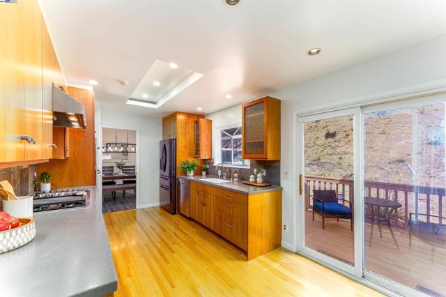 Nestled in the Oakland Hills in a tranquil neighborhood just minutes from local shops in Oakland's upscale Sequoyah Heights community. This spacious contemporary French Country-style features 3 bedrooms, 2.5 bathrooms, formal living & dining rooms. Featuring an open floor plan with large stepdown family-room & separate living-room: Laundry room & attached 2-car garage. Details include sophisticated finishes throughout, a stunning hillside location with lots of open space: Laminate floors in living-room with new carpets throughout. Dual-pane windows: Nordic Style Kitchen cabinets with Corian counters: Stainless Steel Appliances: Metal Tile Roof: Central Heating & AC: The expansive backyard provides an urban retreat with a stone patio & Trex-deck. Surrounded by Regional Park's hiking trails & open spaces. All new interior & exterior paint. Finished garage with epoxy floor. Easy access to freeways, shopping & BART. Completely Move-in Ready! Open house sat 10-25 and sun 10-26 from 1 to 4pm.