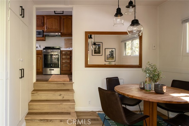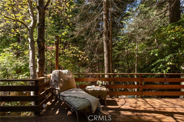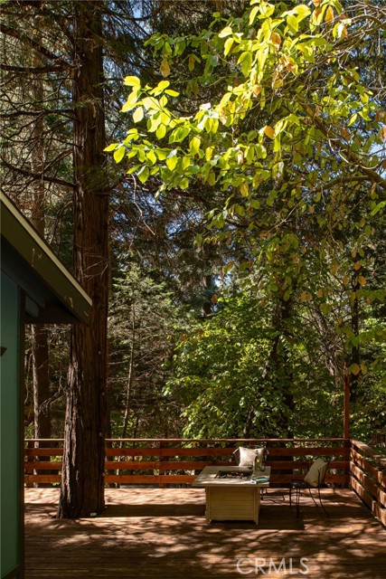 Welcome to the perfect little cottage tucked away in its own private forested haven. This home offers a rare sense of peace and seclusion, situated on a large, usable lot surrounded by majestic dogwoods, cedar, and white fir trees, this home offers serene mountain living at its finest. Step outside and discover what truly sets this property apart: the expansive wraparound deck. Nestled under the canopy of mature mountain trees, this outdoor space feels like your own private treehouse — A flat area—currently used for a swing set—provides a versatile space ideal for additional outdoor seating, a firepit lounge, or garden. Access the property via your own private two-car carport located on Lake Dr., leading you down into this enchanting woodland retreat. Step through the French double doors into a warm and inviting living room, featuring vaulted ceilings with exposed beams, skylights, and a cozy wood-burning stove. The upgraded kitchen flows seamlessly into the living area, perfect for entertaining. Just a few steps down, you’ll find a charming dining room with its own set of French doors opening to the deck, creating a beautiful indoor-outdoor living experience. The private bedroom is cozy and tucked away, complete with sliding glass doors for direct access to the deck. Upstairs, a carpeted loft offers an additional sleeping space—ideal for guests or a quiet reading nook. Ideally located in the Arrowhead Villas community, this home is just a short distance to Lake Arrowhead and Skyforest, home to local favorites like LouEddie’s Pizza, Skypark at Santa’s Village, and a collection of boutique shops. Come see for yourself!