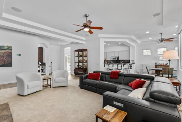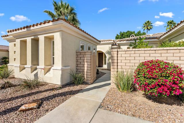 Perfectly positioned within the sought after enclave of La Quinta Del Oro, this beautifully appointed residence offers over 3,000 square feet of refined desert living designed for both ease and elegance. A thoughtfully conceived open floor plan unfolds beneath high ceilings and abundant natural light, creating a seamless connection between living, dining, and entertaining spaces. At the heart of the home, the gourmet kitchen is appointed with stainless steel appliances and generous preparation space, overlooking a spacious great room anchored by a decorative fireplace, ideal for both everyday living and effortless gatherings. The primary suite is a tranquil retreat, complemented by well-proportioned guest bedrooms and a versatile den or office, offering flexibility for today's lifestyle. Outdoors, the home reveals a private resort-style setting rarely found, an inviting pool and spa framed by mature landscaping, a covered patio for shaded lounging, and a sense of seclusion that enhances both relaxation and entertaining. Ideally located near the world class Indian Wells Tennis Garden and moments from renowned dining, shopping, golf, and cultural amenities. A detached casita provides additional privacy for guests or extended stays, completing a property that balances comfort, flexibility, and prime desert positioning. Offered furnished per inventory.