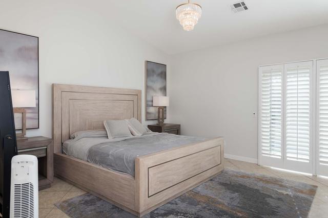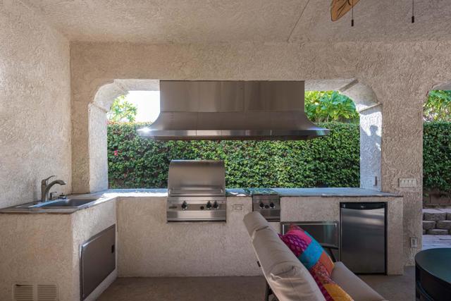 NEW PRICE of $650,000! Discover resort-style living at 78721 Siena Ct in the desirable Bella Vista community. This beautifully maintained 3-bedroom, 2-bath (+1 outside water closet and shower) home features an open floor plan and a spacious covered patio perfect for year-round entertaining. Enter the front door foyer through a gated courtyard and you will find elegance and comfort. Dramatic high volume ceilings and a lovely dining area, custom bar space and custom wall in living room. Once in the kitchen there is a double oven, range, dishwasher, plenty of counter space and another casual dining area. The Primary en-suite features dual sinks, walk-in shower and a large soaking tub. There is a guest bedroom with a walk in closet. The third guest bedroom also has a walk in closet and is currently being used as a tv room, could easily be converted back to a private bedroom. Step outside to your private oasis complete with a sparkling saltwater pebble-tec pool, waterfall spa, cozy fire pit, and a covered built-in BBQ, outdoor kitchen, outside shower and bathroom! A rare opportunity to enjoy luxury, comfort, and indoor-outdoor living at its finest. Bella Vista community has a lovely dog park and is conveniently located near shopping, dining, entertainment and easy access to surrounding Desert cities. Close to Indian Wells Tennis Gardens and all that beautiful La Quinta has to offer. Low HOA's paid quarterly of only $145! Bella Vista electric company being serviced by Imperial Irrigation District for lower electricity costs and you will also rest easy knowing the HVAC and Water Heater was replaced in 2023!