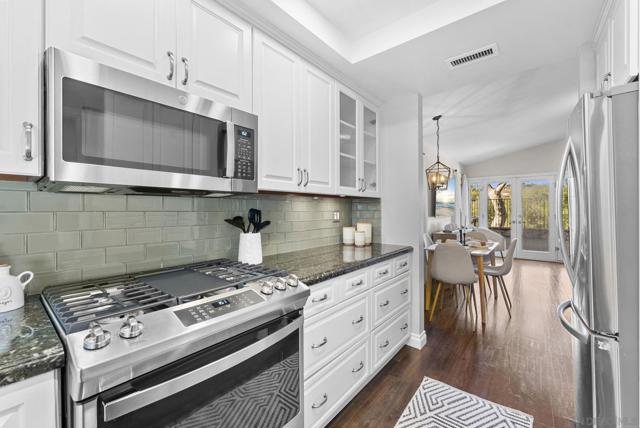 Enjoy effortless coastal living in one of La Costa’s most loved neighborhoods. This single-story home blends comfort, style, and privacy with a layout that feels open, bright, and incredibly inviting. With 2 bedrooms and 2 bathrooms, it’s the perfect retreat for anyone looking for easy living close to it all. Step inside to soaring vaulted ceilings and an airy floor plan filled with natural light. The home has been thoughtfully upgraded with newer dual-pane windows, luxury vinyl plank flooring, central A/C, and beautifully renovated bathrooms. The spacious primary suite offers plenty of room to recharge, creating a calm, comfortable place to begin and end your day. Out back, enjoy a private outdoor space designed for both relaxing and hosting—complete with low-maintenance turf, a built-in BBQ, and an outdoor kitchen overlooking open space. It’s the ideal spot for evening dinners, weekend gatherings, and family fun. Located just steps from lush greenbelts, a community park, and the neighborhood pool, and minutes from top-rated Encinitas schools, shopping, dining, and North County’s best beaches, this home captures the charm of single-level coastal living at its finest.