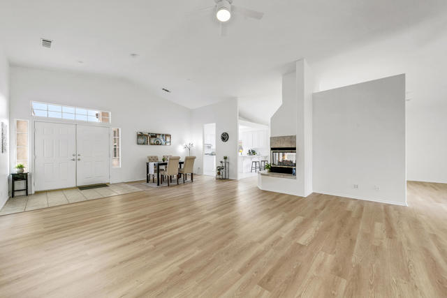 Welcome to 79624 Morning Glory, a beautifully updated 4-bedroom, 3-bath home with a spacious 3-car garage, offering 2,510 sq. ft. of modern comfort and style in one of North La Quinta's most desirable neighborhoods.Thoughtfully renovated, this home features luxury vinyl flooring throughout, quartz countertops, and new sinks and faucets in the kitchen. The bathrooms have also been refreshed with new countertops, while additional updates include a new dishwasher, new washer and dryer, fresh interior paint, and modern light fixtures that enhance every room with a bright, contemporary feel. A stunning dual-faced fireplace adds warmth and elegance to both the living room and the master bedroom/bathroom suite.The open-concept floor plan provides a seamless flow for entertaining or everyday living. Outside, the spacious backyard offers plenty of room to build your dream pool or create your ideal outdoor retreat.Perfectly situated within walking distance to all three top-rated IB schools (elementary, middle, and high school), and just minutes from shopping, dining, golf courses, and the Indian Wells Tennis Garden, this home delivers the perfect balance of style, comfort, and convenience in a quiet, family-friendly neighborhood.Move-in ready and beautifully refreshed -- your La Quinta lifestyle begins here!