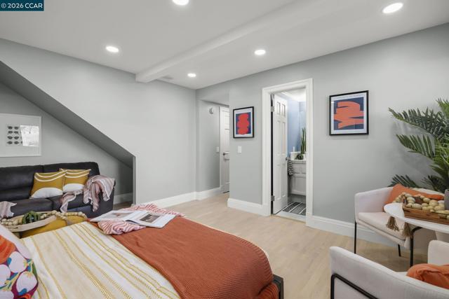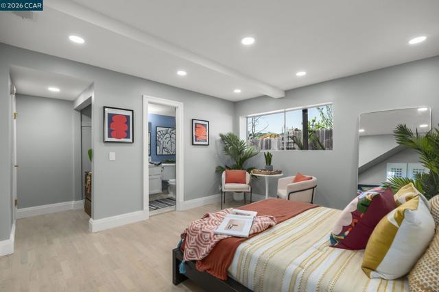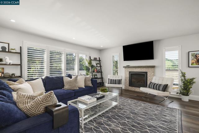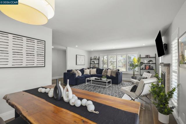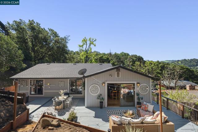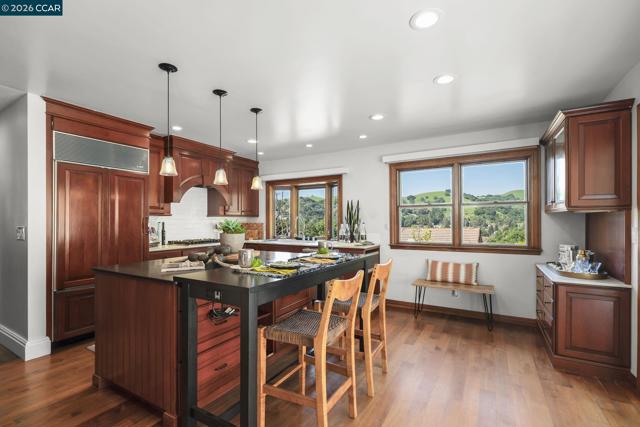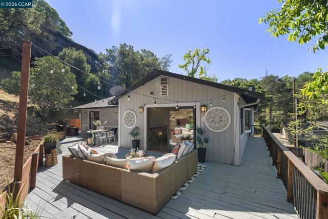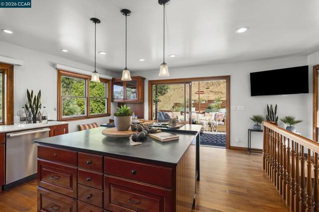 Tucked on a quiet court in the Martinez hills, this home offers privacy, space, & stunning views on a .32-acre lot. This 2,065 sq ft home features 4 bedrooms and 3 baths with a thoughtful, flexible layout. The beautifully updated kitchen is a chef’s dream with Viking gas cooktop, Sub-Zero refrigerator, Miele double ovens, workstation island, and abundant storage. Hardwood floors and eat in kitchen options frame breathtaking green hillside views. Step out to a spacious deck—perfect for dining, relaxing, and enjoying California living. The great room showcases luxury vinyl plank flooring, designer lighting, plantation shutters, and scenic outlooks. Two secondary bedrooms are filled with natural light, while the hall bath features a stylish color-drenched design. The serene primary suite offers a Juliet balcony, walk-in closet, and tranquil bath. Downstairs, a private guest suite with full bath and workspace is ideal for multigenerational living, guests, or rental potential. Plus an oversized 2-car garage, ample parking, mature trees, and a charming chicken coop. Minutes to downtown Martinez, dining, marina, and Hwy 4. A true lifestyle property! --