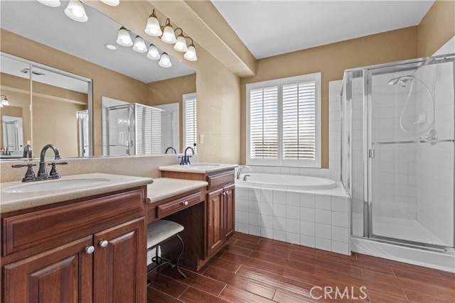 STUNNING POOL HOME – MODEL PERFECT & Turn-key READY! Welcome to your dream home! This impeccable, model-style residence offers the perfect blend of luxury, functionality, and comfort—with features every home buyer desires and more. From the moment you step inside, you’ll fall in love with the expansive open floor plan, filled with natural light and thoughtfully designed spaces. The spacious living and dining areas include ceiling fans and offer flexibility for family living or formal entertaining. The Gourmet Kitchen: The heart of the home is a chef’s dream kitchen, featuring: Oversized island with sink, cabinet, and dishwasher. Beautiful granite countertops, Abundant cabinetry for storage, Generously sized walk-in pantry, Seamless flow into the main living areas: Dual Primary Suites + Additional Bedrooms, This home features two primary suites—one downstairs and one upstairs—each offering: Private en-suite bathrooms Separate water closets Full walk-in closets with mirrored sliding doors. Upstairs, you'll also find three additional spacious bedrooms, each with mirrored closet doors and ceiling fans, plus a large loft perfect for a game room, office, or second family area. A full guest bathroom is conveniently located on the upper level as well. Functional Amenities: Downstairs laundry room with washer/dryer hookups, utility sink, and built-in cabinetry, Powder room for guests on the main level. Incredible Entertainer’s Backyard! If you love to entertain or relax outdoors, you’ll be blown away by the resort-style backyard, which includes: An expansive sunroom with sliding doors connecting to the kitchen and downstairs primary suite. A sparkling swimming pool with a breathtaking waterfall feature! Gorgeous jacuzzi with its own cascading waterfall, Built-in fire pit area, Low-maintenance landscaping, RV parking for your toys and trailers, 3 car garage. Plenty of parking space in this very large drive-way! This home truly checks every box—modern layout, luxurious finishes, and an outdoor oasis made for year-round enjoyment. Don’t miss your chance to own this one-of-a-kind property.
