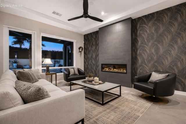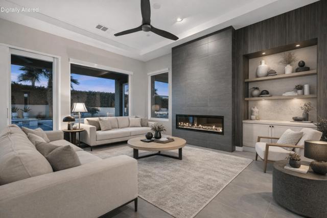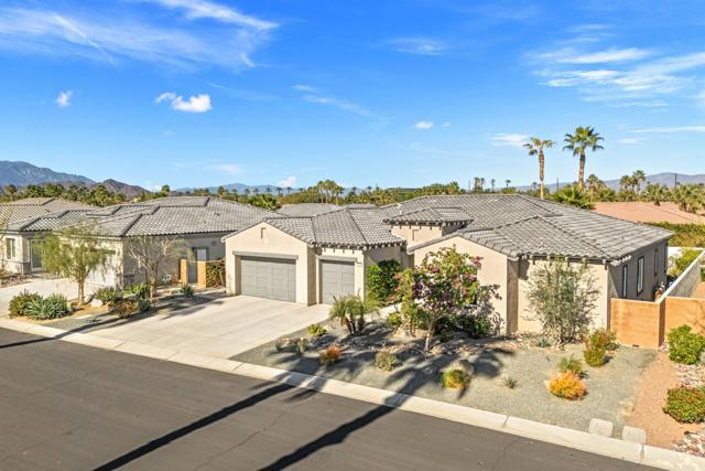 81890 Thoroughbred Trail | Rancho Santana | South La QuintaSituated within the sought-after Rancho Santana community, 81890 Thoroughbred Trail presents a compelling opportunity to own a newer-construction, contemporary home in one of La Quinta's most desirable residential settings. Completed in 2021, this later phase is especially prized for its transitional design aesthetic, contemporary features and appliances, wide and well-maintained streets, mature landscaping, and overall sense of space, distinguishing itself from earlier phases of the community. The residence spans 2,912 sq ft and offers 3 bedrooms and 4 bathrooms, featuring an open-concept layout designed for today's buyer and the desert lifestyle. Contemporary finishes, a seamless kitchen-to-living connection, and a spacious primary suite create a home that feels current, comfortable, and easy to live in. Each secondary bedroom is en suite, providing privacy and flexibility for family or guests, while the third bedroom offers its own private entrance, ideal for visitors or extended stays. The contrast between clean white kitchen amenities, large-format darker tile flooring, and the fireplace detail adds visual interest and broad decor appeal. Owned Solar is another Asset with underestimated utility and long-term value.Set on a generous 10,000+ sq ft lot, the spacious backyard offers ample room for relaxed desert poolside living and entertaining, while capturing beautiful westerly San Jacinto Mountain views. Rancho Santana residents enjoy community parks, walking paths, and gathering areas, further enhancing the neighborhood's appeal.The location is complemented by proximity to many of the desert's finest lifestyle and sporting destinations, including premier private golf clubs, the Indian Wells Tennis Garden, Desert International Horse Park, Thermal Club, Jacqueline Cochran Regional Airport, polo grounds, pickleball facilities, and the Coachella and Stagecoach music festival venues. Nearby Old Town La Quinta and the famed La Quinta Resort offer additional options for dining, shopping, and local exploration.Whether seeking a year-round residence or a seasonal retreat, this home and community appeal to a wide range of buyers. Opportunity to own in this newer phase of Rancho Santana. Select images include virtual staging to illustrate contemporary furnishing option.