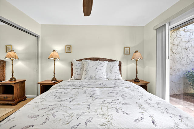 Welcome to this inviting condo in the desirable Indian Palms Country Club, offering 975 sq. ft. of living space with stunning south-facing views of the greenbelt, waterway, and surrounding mountains. This charming home features tile flooring throughout, vaulted ceilings, and an open layout that blends comfort and functionality. The kitchen showcases granite countertops, stainless-steel appliances, and ample cabinetry, while the adjacent wet bar makes entertaining effortless. A versatile den provides the perfect space for an office, reading nook, or guest area. Enjoy outdoor living on two private patios--ideal for relaxing and taking in the peaceful views. This property is being sold turnkey furnished per inventory, allowing you to move right in and start enjoying the resort lifestyle. Located within the gates of Indian Palms Country Club, residents have access to 27 holes of golf, community pools and spas, a fitness center, tennis and pickleball courts, and on-site dining all just minutes from shopping, restaurants, and the Empire Polo Grounds. Experience easy desert living with comfort, charm, and panoramic views in this Indian Palms retreat.