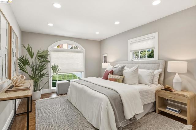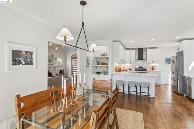 VIEWS! VIEWS! VIEWS! Welcome to your Oakland oasis! This updated home is a light-filled masterpiece, nestled in the sought-after Oak Knolls/ Golf Link neighborhood. Prepare to be swept away by the dramatic, open-concept floor plan and the meticulous designer finishes found throughout. From the moment you step inside, you are greeted by a spacious living room featuring refinished hardwood floors, magnificent arched high ceilings, and a cozy wood-burning fireplace. Large, strategically placed windows frame the breathtaking, unobstructed views of the San Francisco skyline. A view you can soak up even closer from the incredible sunroom, easily accessible from both the dining and living areas. Imagine ending every day with an outstanding sunset spectacle. The kitchen is finished with modern cabinetry, stainless-steel appliances, & striking quartz counters and backsplash. Making it as beautiful as it is functional. The primary suite with luxurious shower, another bedroom and one full bath finish the main level. The lower level offers 2 more bedrooms, a full bath & large storage area. Enjoy dining al fresco in the landscaped backyard. Upgrades in 2022 include, a new roof, HVAC, tankless water heater, new electrical and copper plumbing, and NEST thermostat.
