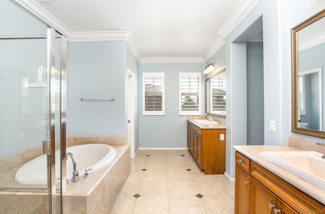 Welcome to a stunning townhome in the heart of Del Sur that lives like a single-family residence. This spacious 4-bedroom, 3-bath home offers an open and inviting floor plan spanning over 2,300 square feet, with refined finishes throughout. Enjoy the light-filled living spaces accented by plantation shutters, crown molding, and a cozy fireplace. The gourmet kitchen features rich cabinetry, granite countertops, and a large island perfect for entertaining. Upstairs, the generous primary suite offers a serene retreat with a spa-inspired bath and walk-in closet, while the additional bedrooms and loft provide flexible space for guests or a home office. Step outside to a private patio with custom pavers and low-maintenance turf — ideal for dining al fresco or relaxing under the San Diego sun. An attached two-car garage provides convenience and ample storage. Situated in the award-winning Del Sur community, residents enjoy access to 14 neighborhood parks, 11 solar-heated pools, scenic hiking and biking trails, and top-rated Poway Unified schools. Centrally located near Del Sur Town Center, shopping, dining, and freeways, this home perfectly blends comfort, community, and convenience.