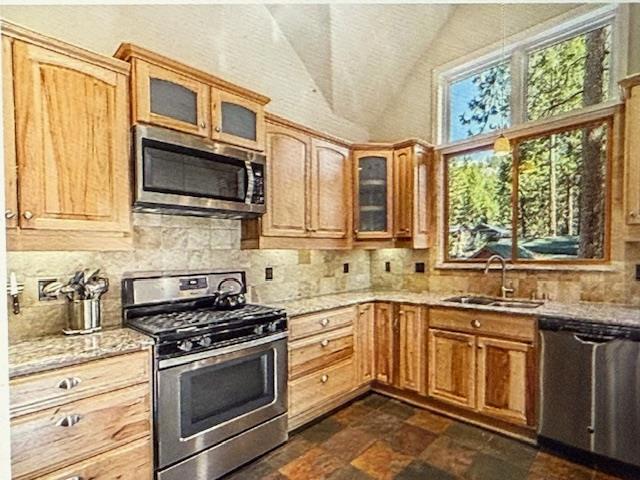 Easy walk to the beach, shops and restaurants. Cozy in floor hydronic heat. Kitchen opens up into large, sunny great room with vaulted ceilings and gas log fireplace. Large primary bedroom suite with custom closet, separate shower, separate tub, granite countertops and vaulted ceilings. Comfortable deck with stairway access down to the large back yard. RV parking on side of home. Spacious guest rooms downstairs with full bath bath and 1/2 bath upstairs. 2 car garage. Flat, fenced yard with shed and level driveway are an added bonus. Home has been well maintained. Dog friendly; No Smoking; Garbage included; Tenant pays utilities