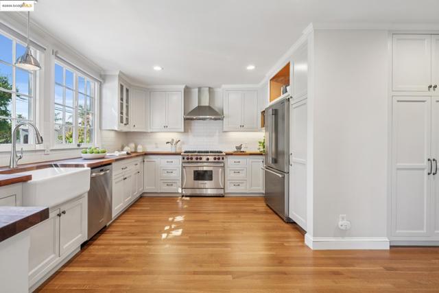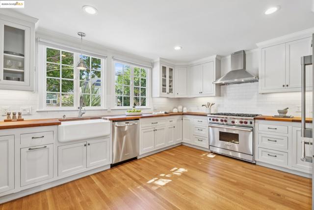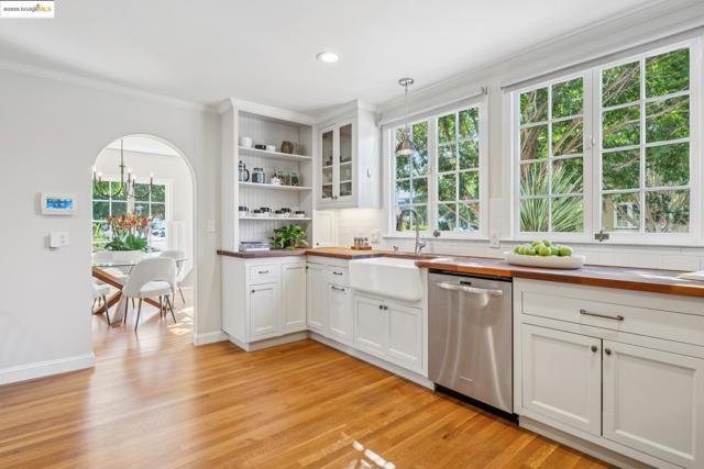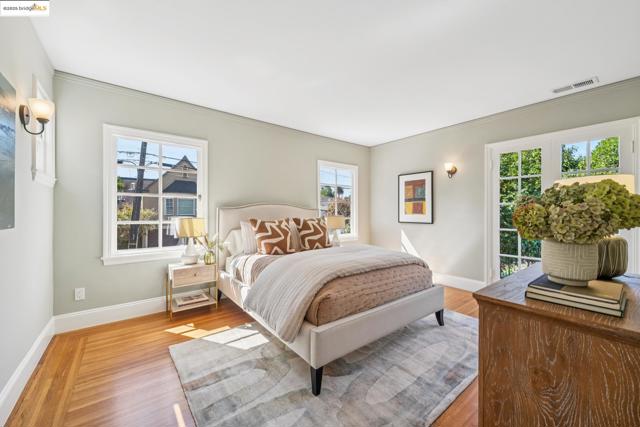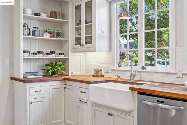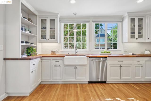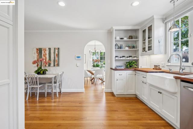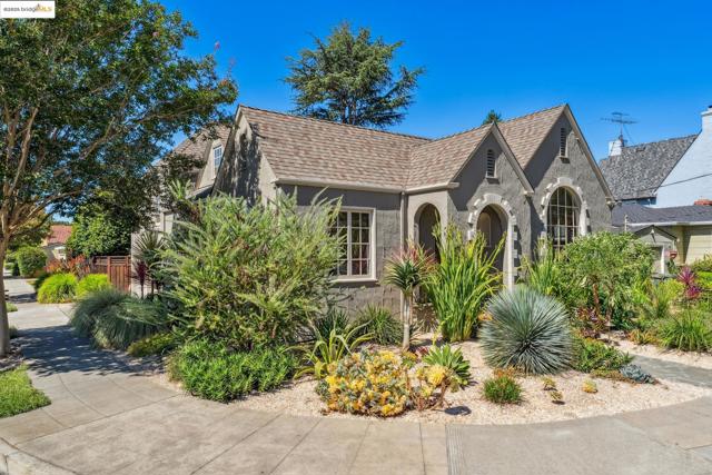 Welcome to 869 Lee Avenue in coveted Estudillo Estates! This enchanting 1920s Tudor is sited on a large corner lot in a serene neighborhood. Flooded with natural light, the home blends vintage charm with modern updates, surrounded by artful, water-wise gardens. Inside, a sun-filled living room with barrel-vaulted ceiling, arched doorways, and matchstick oak floors flows to a formal dining room and stunning chef’s kitchen with Wolf range and Iroko wood counters. A guest suite with private entrance completes the main level. Upstairs are two bedrooms with garden views and a spa-like bath with marble, glass shower, and soaking tub. The finished attic offers extra flex space, while the lower level with separate entrance provides a family room, office, or gym, plus laundry and half bath. The home has two zones of AC. The spacious backyard features enclosed gardens, citrus, fig, and passion vine—ideal for entertaining or relaxing. Attached two-car garage. Over $150k in recent upgrades and Clear Pest! Just blocks to Paradiso Restaurant, Zocalo Cafe; 1 mi to BART, with quick access to Oakland.