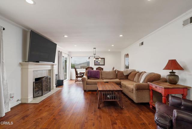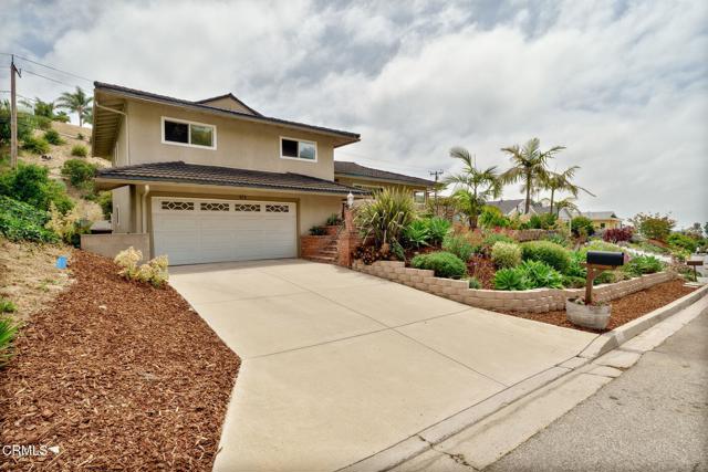 Fantastic opportunity! This exceptional 4-bedroom, 3-bathroom split-level home offers 2,500+ sq ft on nearly 0.5 acres in prestigious Ondulando. Entry level features gourmet kitchen with island, open-concept living/dining with peek-a-boo ocean views and upgraded solar system. Ground level includes 2-car garage, oversized bedroom with full bath, wet bar, and direct backyard access with built-in BBQ. Upper level features 3 bedrooms including primary suite with en-suite bath.Premium amenities include solar with battery backup, wood-burning fireplace, and expansive backyard with stunning ocean views from upper property. Optional membership to exclusive Ondulando Club (0.25 miles) with pool, spa, clubhouse, tennis, pickleball, and basketball courts. Move-in ready with modern updates in sought-after Ventura foothills location. Perfect for entertaining, multi-generational living, or investment opportunity.