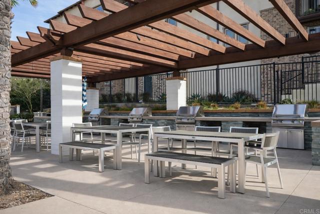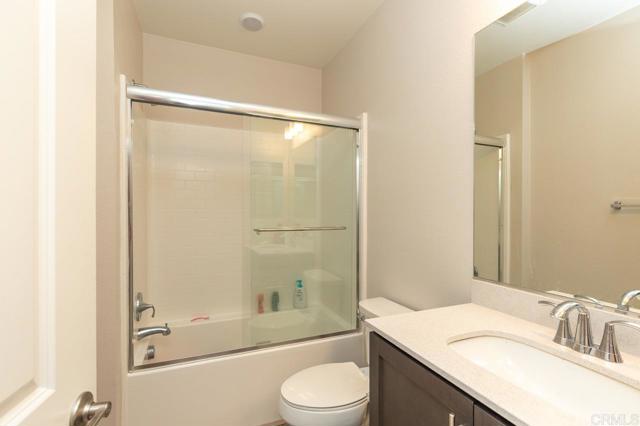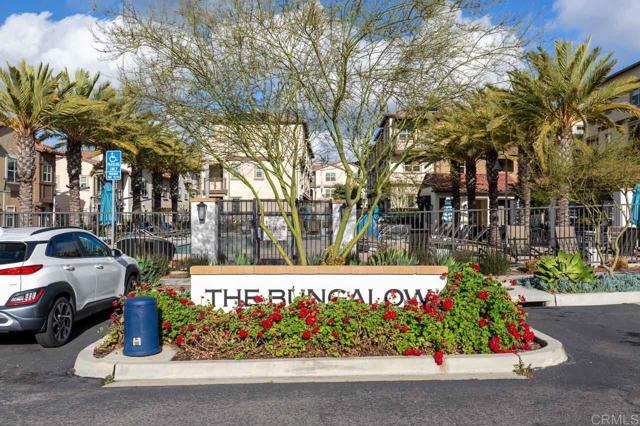 Experience modern living at Skyhaus in Rancho Tesoro, a gated community set against the rolling hills of San Marcos. This well-maintained 2-bedroom, 2-bathroom townhome offers a smart, open-concept layout paired with thoughtful upgrades designed for comfort, efficiency, and everyday ease—including OWNED SOLAR. The home welcomes you through a private, gated patio into a flexible ground-level space that easily adapts to your needs—whether as a dedicated workspace, fitness area, or bonus room. Upstairs, the primary living level feels open and airy, thoughtfully designed to support both daily living and entertaining. The layout places the bedrooms on opposite sides of the home, offering added privacy. The chef-inspired kitchen anchors the space with quartz countertops, sleek stainless steel appliances, and a peninsula with casual seating, creating a natural gathering point while remaining connected to the dining and living areas. Natural light fills the living space, which opens to a balcony—an ideal spot to unwind or host guests while taking in hillside and neighborhood views. The primary bedroom offers a comfortable retreat with plush carpeting, a walk-in closet, and an en suite bathroom featuring dual vanities and a spacious walk-in shower. A second bedroom and full bathroom provide flexibility for guests, family, or additional workspace. Additional highlights include luxury vinyl plank flooring, integrated smart-home features, and an attached two-car garage with EV charging capability and remote access. Enjoy easy access to nearby trails, parks, shopping, dining, and major commuter routes. This property is a true gem!