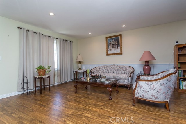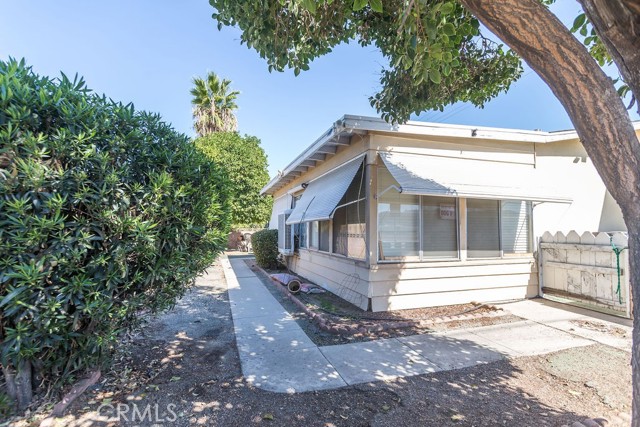 This charming 2-bedroom, 2-bathroom home offers 1,008 sq ft of thoughtfully updated living space in a peaceful 55+ community. this single-level corner home features a low-maintenance yard with hardscape, mature hedges, and a citrus tree in the backyard. Inside, you’ll find laminate flooring in the main living areas, updated bathrooms, and an upgraded kitchen with quartz countertops, tile backsplash, and stainless steel appliances. The inviting living and dining spaces are accented with wainscoting, while the enclosed sunroom provides a flexible space for an office, hobby room, or relaxation area. The backyard is block-fenced, with shade provided by the citrus tree. The laundry room features additional cabinet storage and is conveniently connected to the garage for easy access.Sun Park II Senior Community offers unique resident only direct access to the private park and HOA clubhouse with pool,The backyard has an access gate to the community pool and horse shoe pits, etc. Located in the 55+ Sun Park II community and is conveniently located to parks, restaurants, shopping center, bus stop nearby, and more!