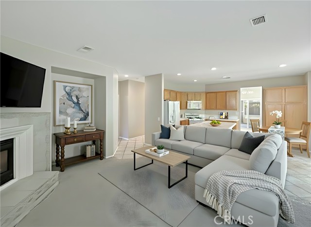 Some photos have been virtually staged for illustration purposes. *Beautifully Upgraded two story house located in the prestigious Wild Rose Community of South Corona!* This move-in ready home features an open floor plan, high ceilings, a charming Romeo and Juliet balcony, a formal dinning room, and a spacious kitchen with large island, pantry with plenty of cabinets.*The family room with gas fireplace opens to the couzy back yard with three covered patios, perfect for entertainment.*The layout includes a downstairs bedroom with 3/4 bath, plus a primary suit upstairs with double doors, walk in closet and brand new glass shower enclosure with dual sink.* Additionally upgrades include fresh interior paint, new carpet, upgraded fixtures, and window shutters downstairs.*Conveniently located close to Temescal Elementary, Dos Lagos Shopping Mall, dining, theaters, and freeway access. House located in a Cul-de-sac with plenty of parking for your visitors. A must see South Corona House*!