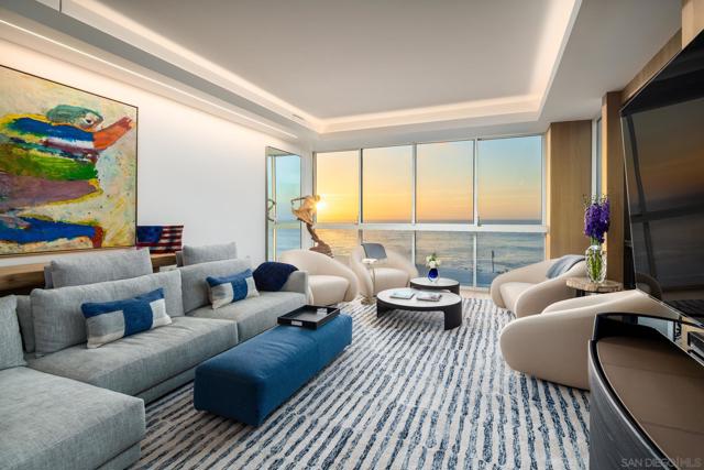 Coastal luxury redefined—this stunning oceanfront residence has just undergone a top-tier ultra-luxury remodel. Custom Italian Poliform cabinetry throughout, paired with top-of-the-line Gaggenau appliances fit for a gourmet chef. Wide-plank hardwood flooring runs seamlessly throughout the space, complemented by Waterworks fixtures and designer details. Enjoy the convenience of an in-unit Miele washer and dryer. No expense has been spared. This fabulous, ocean-facing corner unit boasts sit-down whitewater and coastal views, with sweeping west- and north-facing panoramas. A rare opportunity to live in La Jolla’s premier oceanfront high-rise. Experience refreshing sea breezes from this residence, unit is located on the same level as the heated pool, spa, sauna, guest suites, library, conference room, and entertainment patios. As a full-service concierge building, 939 Coast offers valet parking, a fully equipped gym, 24-hour on-site security, and outdoor dining areas with barbecues. Unique to this level, elevated ceiling height with designer uplighting enhances the sense of space and light. **Inquire about potential to reconfigure into a 2-bed, 2.5-bath layout with over 60 feet of sit-down oceanfront glass. ** Step outside to the iconic La Jolla Cove, where sea life thrives and pelicans soar at eye level—all just a short walk from world-class dining, shops, and galleries. Furnishings are negotiable.