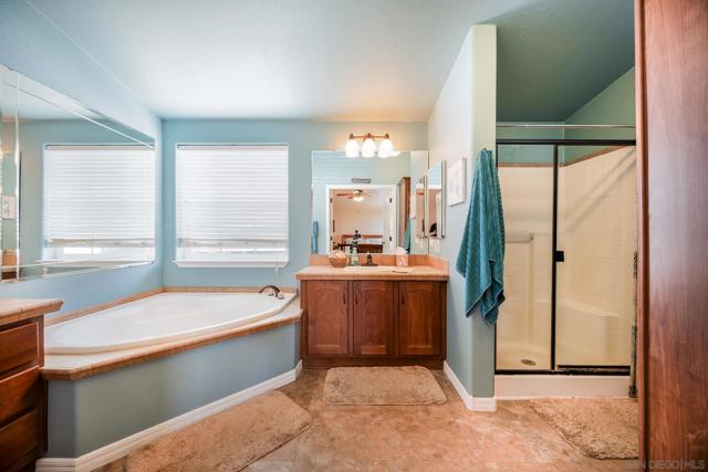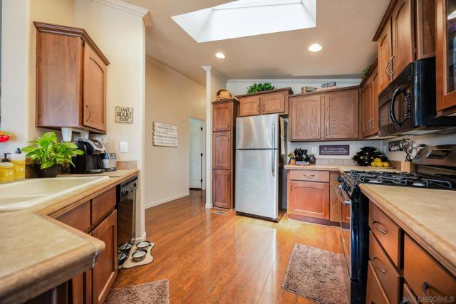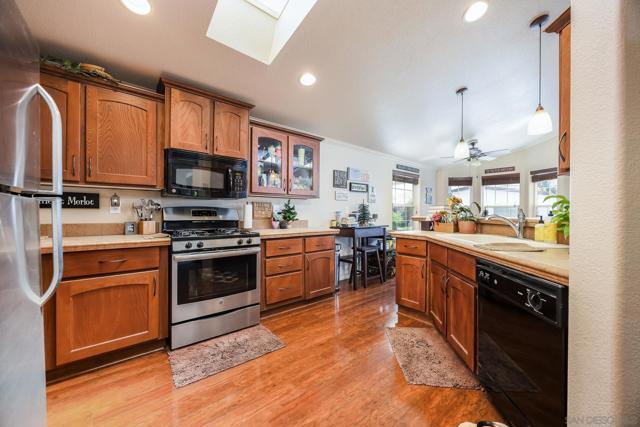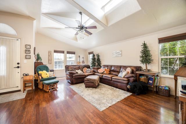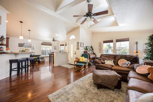 Welcome home! This beautiful 3-bedroom, 2-bathroom home is nestled in an all-age 5-Star community in Lakeside and has it all! This spacious 1440 sqft home features an open floor plan with vaulted ceilings, Ceiling fans and can lighting throughout the home, perfect for modern living and entertaining. The bright, updated kitchen offers sleek countertops, a large sink, and plenty of cabinet space. Enjoy the convenience of a dedicated laundry room, large bedrooms, and bathrooms designed with comfort and function in mind. This home has great curb appeal! Step outside and enjoy your private back yard with artificial turf. This home is so modern, bright and airy; you will be proud to own this jewel of a home. The Lakefront all age community is centrally located close to Lake Jennings, where you can enjoy fishing, camping, hiking and walking. The community offers 2 swimming pools with spa, a billiards table, rec room, dog park, playground, gym, and a basketball court. This is the one you have been waiting for. This home is a must see!!