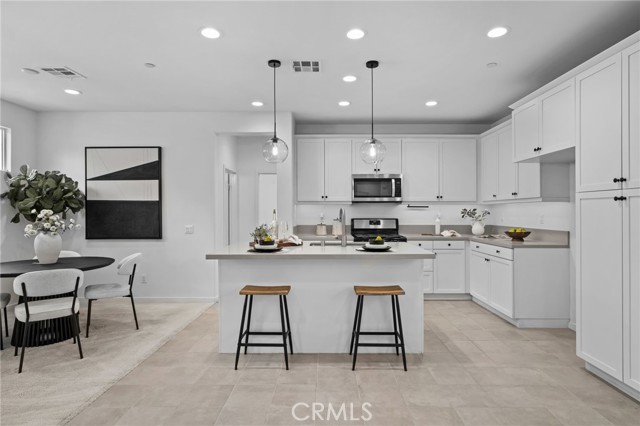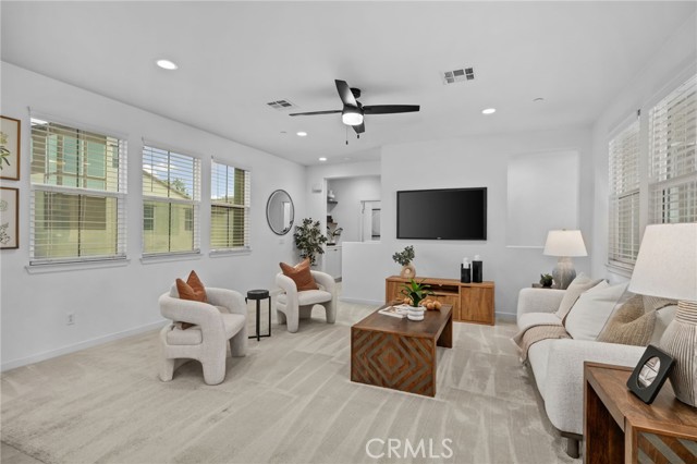 Offering the privacy of a single-family residence with the ease of a low-maintenance lifestyle, welcome to 9463 Retreat Place. A true retreat within The Resort. Step into the main level that feels comfortable and connected, with high ceilings and recessed lighting giving the space an airy, open feel. The kitchen is well-appointed with quartz countertops, white shaker cabinets, stainless steel appliances, and a center island that works equally well for morning coffee or hosting. The primary suite offers a walk-in closet and genuine separation from the two additional bedrooms, a layout that adapts easily to growing families, a home office, or visiting guests. Two and a half baths, a tankless water heater, and a 240V EV charging outlet round out a home that's been thoughtfully set up for everyday life. Life at The Resort revolves around community. Residents enjoy a pool, fitness center, business center, conference rooms, BBQ areas, fire pits, bocce ball and cornhole courts, a dog park with wash station, and an event center that brings the neighborhood together throughout the year. Walkable cafés including Teaspoon boba shop and a Cassidy's Corner Bagel Cafe are just steps away, the kind of convenience that becomes part of your daily routine quickly. Getting around is straightforward, too. You're approximately 5 minutes from the Rancho Cucamonga Metrolink Station, the I-10 and I-15 Express Lanes, which means Downtown Los Angeles and Orange County is accessible for a morning commute. Victoria Gardens, Top Golf, Haven City, Quakes Stadium, and Ontario International Airport are all within a short drive for dining, entertainment, or a quick trip out of town.