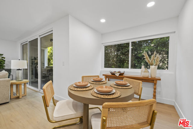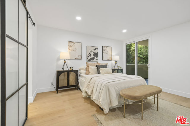 Step into this brand-new designer remodel a 2 bed, 2 bath corner unit offering exceptional privacy, modern luxury, and elevated comfort. The open-concept floor plan flows effortlessly from the living room to the dining area and into a show piece kitchen. Outfitted with Cafe appliances, Taj Mahal quartz countertops, sleek black cabinetry, warm wood accents, and a large island with seating, the kitchen is both stylish and functional perfect for entertaining. Expansive new Milgard Tuscany white windows and sliding glass doors flood the space with natural light and connect to a private balcony surrounded by greenery. Wide-plank French White Oak floors run throughout, creating a seamless modern aesthetic. The bathrooms have been fully reimagined with Taj Mahal quartz counters, custom wood vanities, large-format tiled floors, and brushed gold fixtures. The primary suite includes dual vanities and a walk-in shower, blending luxury with everyday convenience. This home also offers in-unit laundry hookups, with a shared laundry room in the garage for oversized items. Community amenities include a beautifully maintained lobby, sparkling pool, visitor parking, and rentable storage bins in two garage storage areas. Two gated garage parking spaces complete this home. Located on tree-lined Kings Road, just steps to Santa Monica Blvd and the Sunset Strip, this residence delivers timeless design and prime West Hollywood living.
