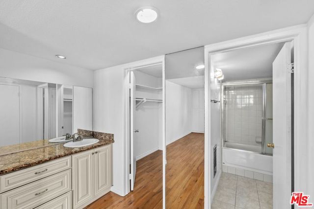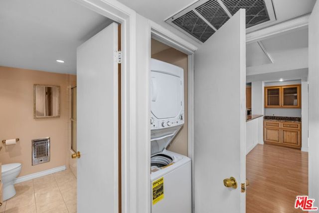Welcome to The Wilshire Marquis, a full service luxury high rise ideally situated along the prestigious Wilshire Corridor in the heart of Westwood. This beautifully updated eighth floor condo offers two spacious bedrooms and two full bathrooms with a smartly designed layout perfect for professionals, roommates, or anyone seeking upscale living minutes from UCLA, Westwood Village, Century City, Beverly Hills, and the 405 Freeway. The formal double door entry opens to a large foyer and bright open concept living and dining area with sweeping views of Century City high rises, mirrored accent walls that expand the sense of space and light, and a built in wet bar with open glass cabinetry for elegant entertaining. The remodeled kitchen features granite countertops, stainless steel appliances, custom cabinetry, and a seamless flow into the living space. A full length private balcony offers a peaceful outdoor retreat with dramatic city views. Both bedrooms are generously sized and feature open views of Century City. The primary suite includes a walk in closet and an updated en suite bathroom with granite counters and custom cabinetry, while the second bathroom offers matching finishes and a tub shower combination. The second bedroom is nearly equal in size to the primary, adding flexibility for shared living or home office use. Additional features include newer wood look laminate flooring throughout, central air and heat, in unit stackable washer and dryer, and a prime location just steps from the elevator lobby for added convenience. The Wilshire Marquis offers resort style amenities including an Olympic length heated lap pool, spa, sundeck, fully equipped fitness center with sauna and locker rooms, three tennis courts including two rooftop courts with panoramic views, barbecue and garden patio areas for outdoor dining, a multipurpose recreation room, and a beautifully attended lobby with twenty four hour concierge and security. Residents also enjoy ample guest parking in a secure multilevel garage and two unassigned gated parking spaces included with the lease. EV charging stations are available on site, and the building is located within the highly sought after Fairburn Elementary School district. Professionally cleaned and move in ready, this residence presents a rare opportunity to lease a luxury condo in one of West Los Angeles's most iconic full service buildings with unmatched access to top rated schools, world class dining and shopping, major commuter routes, and some of LA's best cultural and academic destinations.