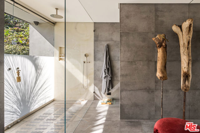 Recently reimagined with a focus on materiality, light, and flow, this refined mid-century residence offers a quiet, design-forward retreat framed by lush, zen-inspired grounds by landscape architects Garett Carlson and Mark Levine. Beyond a gated entry, Venetian plaster walls and expansive floor-to-ceiling glass create a soft interplay of light and shadow throughout, while the formal living room anchored by a striking bronze mirror fireplace, opens entirely to the outdoors -- blurring the line between architecture and landscape. The kitchen balances precision and restraint with a full suite of Miele appliances, Wolf range, custom cabinetry, and stone surfaces, complemented by a glassware showcase and bar that flows into a secondary living area. A dedicated wine lounge with full bath, sculptural powder room, and separate laundry complete the interior, all designed for seamless indoor-outdoor living. Outside, a series of curated spaces unfold from the pool and spa to the alfresco kitchen, dining deck, and fire pit lounge set within layered greenery for complete privacy. The primary suite opens directly to the grounds and features a dramatic two-level dressing room and spa-like bath with Italian onyx vanities and rainfall shower, while a secondary suite and flexible third room offer versatility. Fully updated between 2020 and 2023 with new systems, solar, and HVAC, the home is a cohesive expression of modern comfort and timeless design.