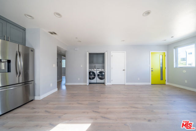 Experience contemporary living in this beautifully designed modern-style 3-bedroom, 2-bath unit built in 2021. Featuring an open floor plan, high ceilings, and clean modern finishes throughout, this home offers both comfort and style. The spacious master bedroom includes a large walk-in closet. Enjoy a sleek modern kitchen with custom cabinets, stainless steel appliances, and LED recessed lighting. Additional conveniences include an in-unit washer and dryer, separate water, gas, and electric meters, and a covered parking space.Built with attention to detail and a clean, modern design, this well-maintained home is located in a secure property with an automatic driveway gate for your peace of mind.