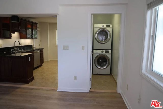 Centrally located in Mar Vista near eclectic restaurants, coffee houses, the Mar Vista Farmer's Market, and the 405 freeway, is this tastefully remodeled 1 bedroom, 1 bath upper apartment in a charming four-plex. This unit is accessed from a secure door on the first floor, with stairs leading up to the 2nd story. Features include a bright open floor plan and hardwood flooring, newly remodeled kitchen with all stainless steel appliances, granite countertops, new cabinetry, and an in unit stackable washer and dryer. The primary bedroom features a ceiling fan and closet with built ins, providing plenty of storage. This 2nd story unit has a back balcony, which overlooks an extremely large shared yard, providing even more outdoor areas to enjoy. Parking is conveniently assigned in front of the building for an additional fee of $75. Tenant is responsible for gas, electric and cable. Small dogs are allowed up to 40lbs, sorry no cats.