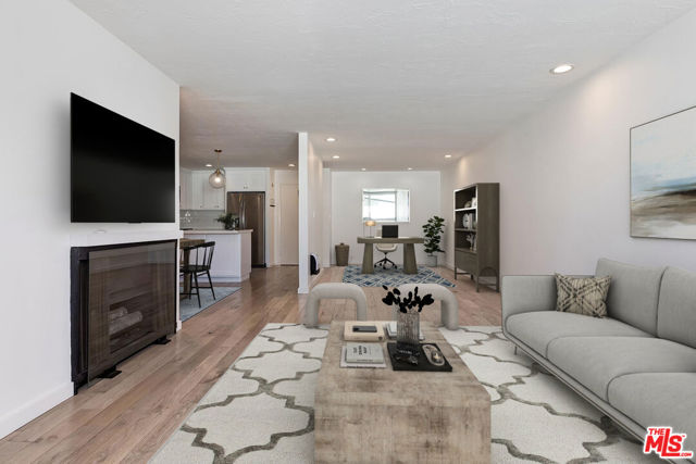 This beautifully renovated and spacious one-bedroom, one-bathroom residence offers sophisticated urban living in the heart of Brentwood. The thoughtfully designed kitchen was completely remodeled in 2022 (approximately $40,000) and widened by approximately 18 inches, creating a notably more expansive layout than most units at Montana Terrace. It features custom cabinetry, premium quartz countertops, herringbone TileBar flooring, and stainless steel appliances, delivering a seamless blend of elegance and functionality. New hardwood flooring extends throughout the home, and the bathroom was tastefully renovated in 2018. The open floor plan with spacious kitchen and dining room makes this home ready for entertaining. The well-maintained building offers an array of desirable amenities, including a pool, sauna, secure entry, gated parking, and on-site laundry. Ideally situated at 11645 Montana Avenue, this residence provides effortless access to Brentwood's Sunday Farmers Market, Whole Foods, and the acclaimed shops and restaurants along San Vicente Boulevard. HOA dues include water, trash, gas, and earthquake insurance. Don't miss this opportunity to own a turnkey home in one of Brentwood's most sought-after locations - welcome to Unit 223. The owner will consider partial seller financing. Photos are virtually staged.