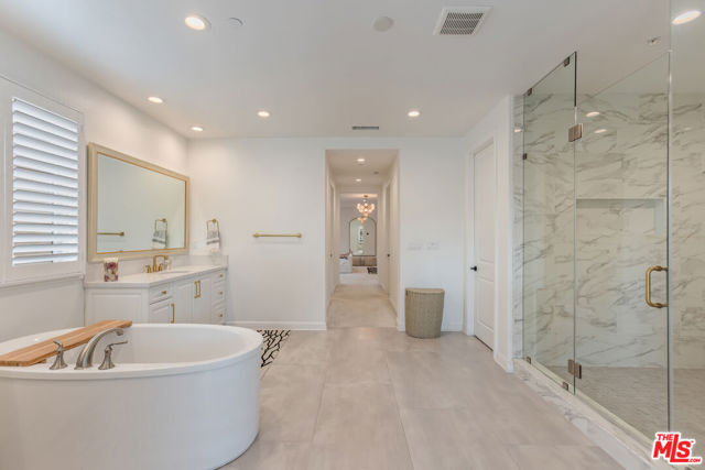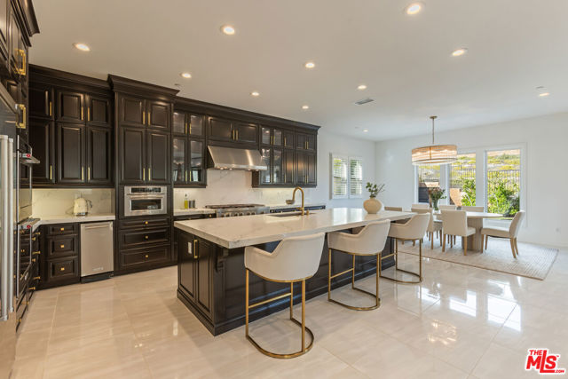 Welcome to 11734 Manchester Way, an exceptional luxury residence located in the prestigious, guard-gated Westcliffe community of Porter Ranch. Built in 2020, this grand traditional home is elevated with modern, neutral finishes and an unmistakable sense of scale from the moment you step inside. A dramatic double-height foyer introduces the home, anchored by a sweeping dual staircase setting the tone for the thoughtful craftsmanship throughout. The open main level offers seamless living and entertaining spaces, including an expansive great room, formal dining area, and a chef's kitchen designed to impress with rich custom cabinetry, premium appliances, and a large center island perfect for gathering. Upstairs, the luxurious primary suite is its own retreat, complete with a spa-inspired bathroom featuring a freestanding soaking tub, oversized marble shower, dual vanities, and abundant natural light. Each additional bedroom is generously sized with its own en-suite bathroom for ultimate comfort and privacy. One of the standout features of this home is the converted loft space, thoughtfully redesigned into a substantial office/flex room ideal for working from home, a creative studio, or a fully dedicated recreational area. Step outside to a resort-caliber backyard where the owners invested heavily in landscaping, hardscaping, lighting, and water features. The custom pool and outdoor environment create a true sanctuary, beautiful by day, and breathtaking at night. With 4 bedrooms, 5 bathrooms, 5,680 sq ft of living space, and a 9,000+ sq ft lot, this residence offers both elegance and functionality in one of Porter Ranch's most coveted enclaves.