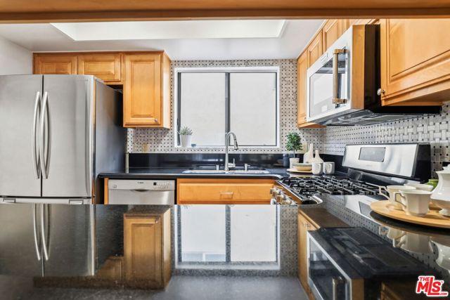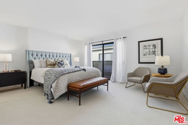 This charming townhouse is in an incredible location that is not to be missed! This Brentwood townhouse is just walking distance away from all the shops, schools, restaurants, grocery stores, golf course and the Sunday local Farmer's market. This recently updated two-level unit comes with beautiful wood floors and brand new carpets. The entry level opens up to a formal living room with a gas fireplace, closed in patio and a half bath which also leads to a bonus room that can be used for an office, den, dining area, or playroom. The kitchen comes with granite counters, tile floors, stainless steel appliances, refrigerator, dishwasher, and built-in microwave/oven. A Miele front load washer & dryer stackable is inside the unit. This townhome also comes with electronically operated with remote control California King and Queen sice beds with headboards. Upper level and Primary bathroom has high ceiling sky lights giving it an airy and open feel with natural lighting. Primary room also has it's own balcony and large walk -in closet. Additional storage also indoors under the staircase. Tandem gated two-car parking space with outdoor storage space.