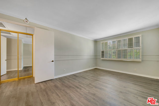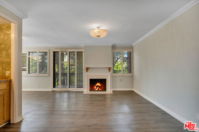 Move right into this bright and spacious condominium in Brentwood, just one block from Wilshire Blvd. The open floor plan features updated flooring throughout, while the living room offers a cozy fireplace, 9-foot ceilings, crown molding, recessed lighting, and plantation shutters. A generous master bedroom, ample-sized second bedroom, and a versatile den ideal as a home office provide flexible living space. Abundant closet and cabinet storage throughout. In-unit side-by-side washer and dryer for added convenience. Central heat and air conditioning. Two gated, side-by-side parking spaces included. Perfectly situated steps from Brentwood's best dining, shopping, and everyday conveniences.