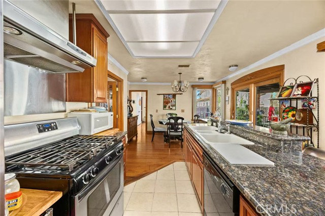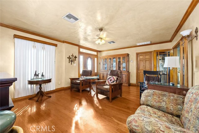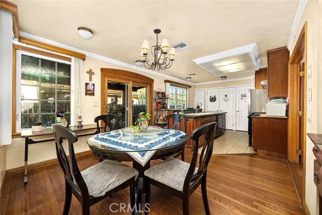 Situated on an expansive lot in the City of El Monte, this well-maintained mid-century residence offers comfort and an inviting atmosphere throughout. It Features 3 Bedrooms and 2 Bathrooms. Attractive curb appeal with a timeless brick-accented façade and beautifully maintained front lawn. Charming front entry steps set the tone for this delightful home. The inviting living room is filled with character, featuring rich wood finishes, crown molding, decorative ceiling finish, a fireplace, and a large picture window that brings abundant natural light. Well-maintained kitchen with stainless steel appliances and a center island with dual sinks. Adjacent dining area offering large windows and sliding glass doors leading to a covered patio – ideal for indoor-outdoor gatherings. Spacious and bright primary bedroom featuring a large bay window and sliding doors to the side yard, and a walk-in closet. Updated en-suite bathroom with dual sinks, vanity, and a large walk-in shower. Two additional generously sized bedrooms served by a well-appointed full bathroom. The laundry closet is conveniently located near the kitchen. Dual-pane windows & original hardwood flooring throughout most of the home. Central AC and heating for year-round comfort. Detached 2-car garage with a roll-up door and backyard access. Low-maintenance backyard with a blend of brick hardscape and lawn space – perfect for outdoor enjoyment. Close to Zamora Park Basketball Court and Sam’s Club. Quick access to the 10 and 605 freeways — ideal for commuters.