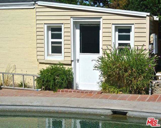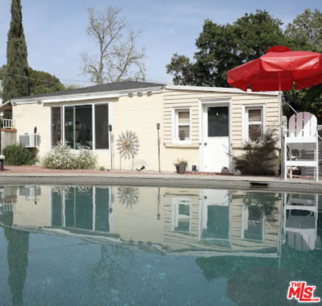 Valley Village Cottage. Light and Bright with a Sunny Pool on a Lovely Street. Landscaped and fenced private back yard. Detached large office/studio perfect for social media marketing or an editing bay. Living room with beamed ceiling, decorative fireplace and hardwood floor. Kitchen has new appliances and granite counter tops. Spacious master bedroom with a decorative fireplace and new en-suite bath with unique and wonderful shower. Den/Media room with French doors out to the pool area. Bedroom/Office with Murphy bed. Detached two car garage, long gated driveway. Laundry room with washer & dryer. Gardener and pool service included in the rent. Close to freeways, shopping, restaurants, schools, and studios.