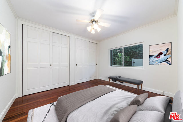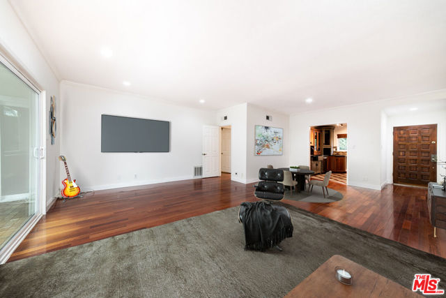Located just below the legendary Sunset Strip in prime West Hollywood, this light-filled, move-in ready 2-bedroom, 2-bath condo at "Hilltop House" offers a spacious layout with over 1,200 sq. ft. in one of LA's most iconic neighborhoods. Just moments from the vibrant pulse of Sunset Boulevard, where renowned restaurants, boutiques, iconic hotels, social clubs, and Equinox await your exploration. The unit features wood floors, recessed lighting, crown molding, dual-pane windows, central heating and air, and a large south-facing balcony with access from both the living room and primary suite -perfect for enjoying morning coffee, winding down with a glass of wine, al fresco dining, or even creating an herb garden. The kitchen includes stainless steel appliances, a built-in microwave, farmhouse sink, solid wood custom cabinetry, glass tile backsplash, and a tankless water heater. The primary bathroom offers a spa tub, separate shower stall, and double sink bowls. Ample closet and storage space throughout. Additional highlights include two parking spaces, low HOA dues, and a secure, controlled-access building with lush landscaping and a sparkling pool. One of the best buys in West Hollywood - don't miss this opportunity.