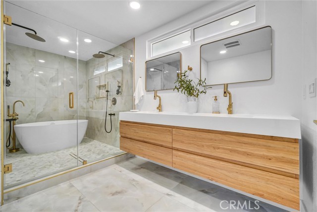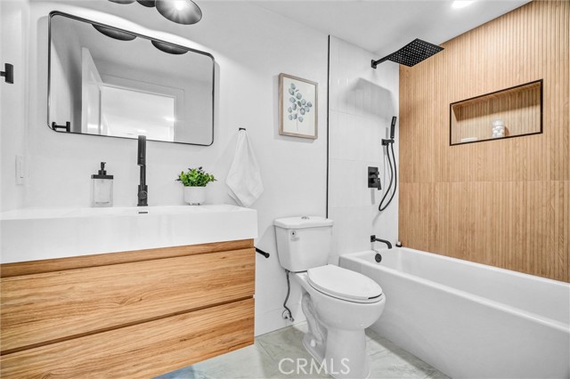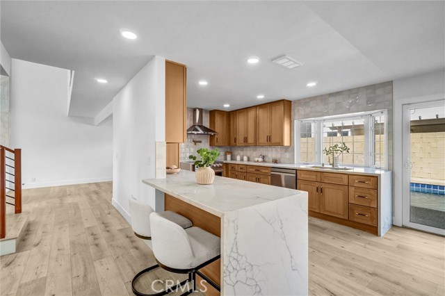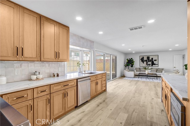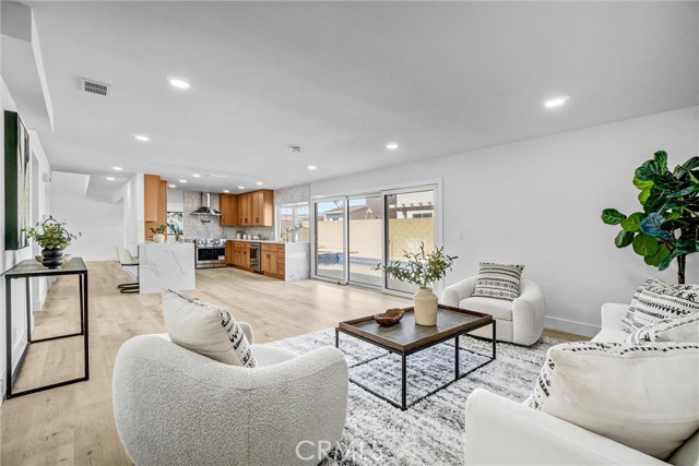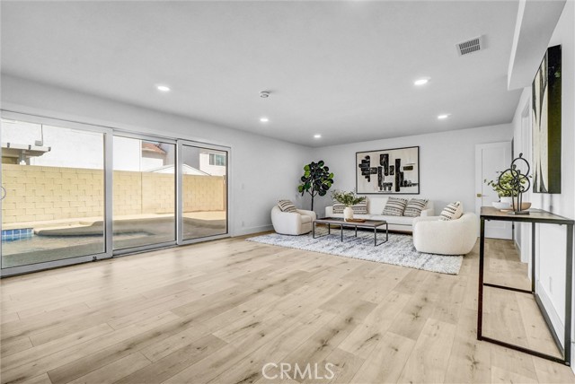 Stunning and rarely available luxury home in one of Cerritos’ most sought-after neighborhoods, located within the top-rated ABC Unified School District. This fully renovated two-story residence features new laminate flooring throughout, recessed lighting, and stylish modern fixtures. The open-concept layout highlights a brand-new kitchen with quartz waterfall countertops and stainless-steel appliances, seamlessly connecting the living and family rooms. The spacious master suite offers cathedral ceilings, a private balcony, and a beautifully upgraded bathroom with a bathtub inside the shower. Additional features include a bedroom and full bath downstairs, a guest half bath, central AC, and a backyard with a sparkling pool—perfect for entertaining. Conveniently situated near major freeways, parks, and shopping centers, this home is a rare opportunity to own a move-in-ready property in one of Cerritos’ most desirable communities.