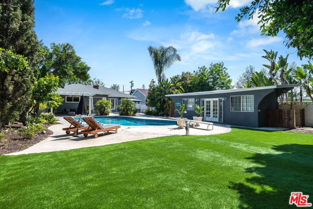 Stunning oasis located in the coveted Beeman Park neighborhood. Covered in mature Ficus trees, this resort style home sits on over 10,000 square feet and boasts a yard and entertaining space rarely seen in prime Studio City. Reimagined with the idea of connecting the indoor and outdoor with its open layout and flow, this is truly California living. This thoughtfully remodeled and expanded home features 3 beds, 3 baths and is adorned with a detached structure with bathroom , perfect for a gym or home office!. Hardwood floors, built in cabinetry, a custom breakfast nook, quartzite countertops, integrated sound system, electric car charger, new turf and pool resurfacing are just a few of the upgrades made. Located moments from Sportsmans Lodge, Beeman Park, Whole Foods, Hugo's, Ventura Blvd, Wedding Golf & Tennis & all the best in Studio City.